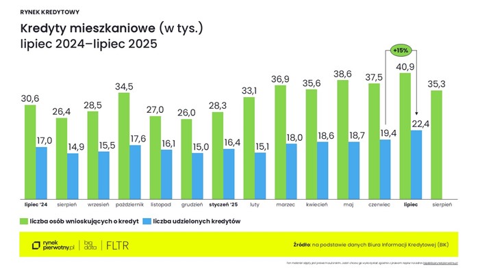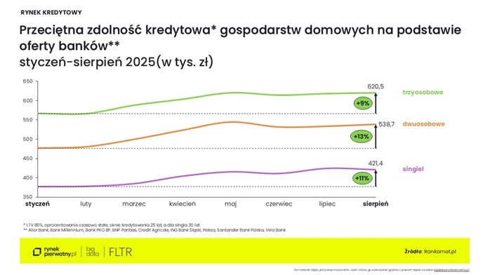 Równocześnie zwraca uwagę, że o ile lipiec przyniósł poprawę dostępności kredytów mieszkaniowych dla przeciętnie zarabiających gospodarstw domowych, to w sierpniu banki nieco mniej łaskawym wzrokiem spoglądały na singielki i singli.