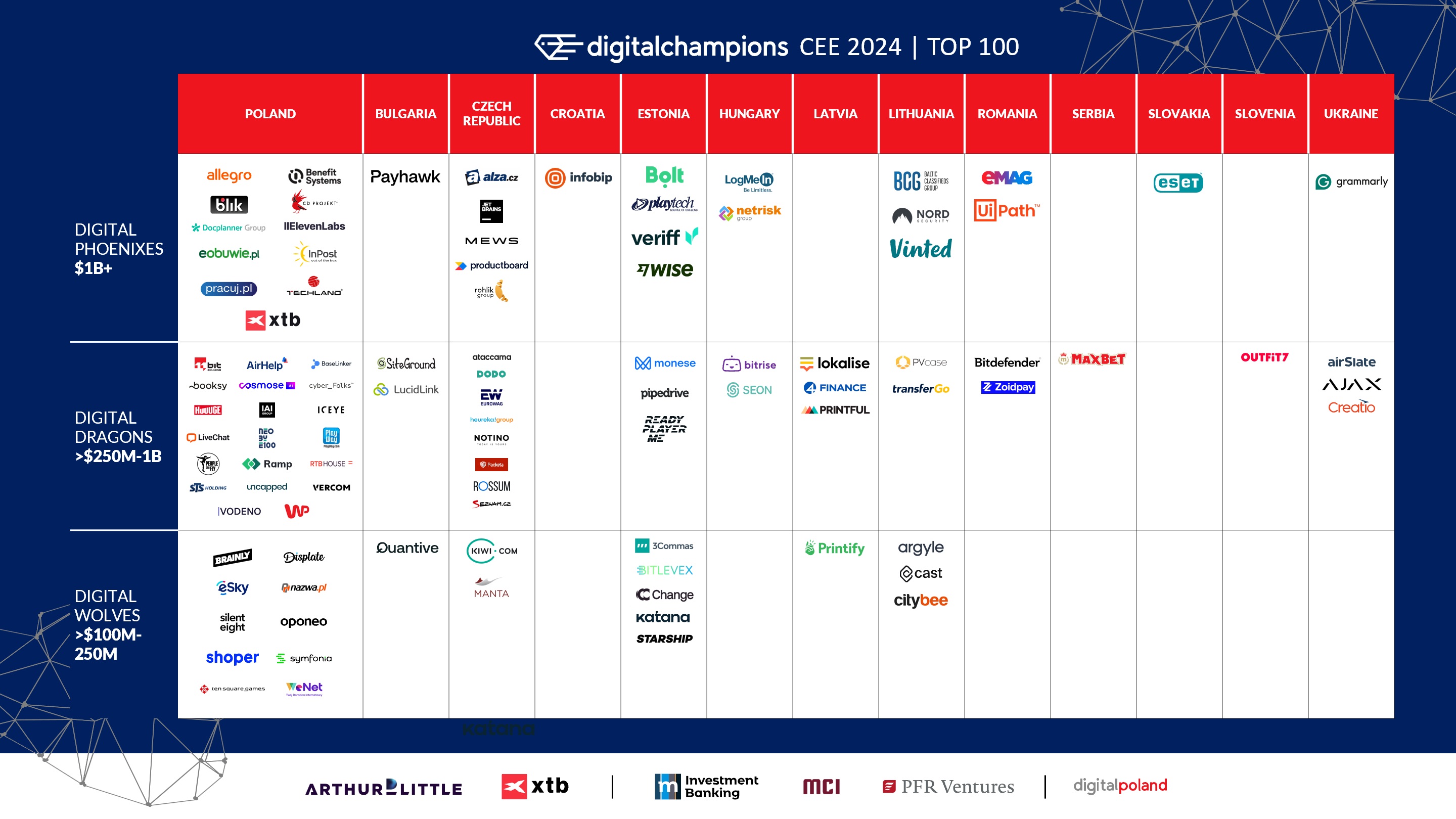 Fundacja Digital Poland po raz trzeci przygotowała ranking Digital Champions CEE. Jego celem jest promocja tej części Europy, stworzenie platformy wymiany doświadczeń między poszczególnymi krajami oraz zachęcenie do inwestowania w spółki technologiczne w regionie CEE. Zestawienie powstało na podstawie przejrzystych i aktualnych danych oraz surowych kryteriów finansowych.