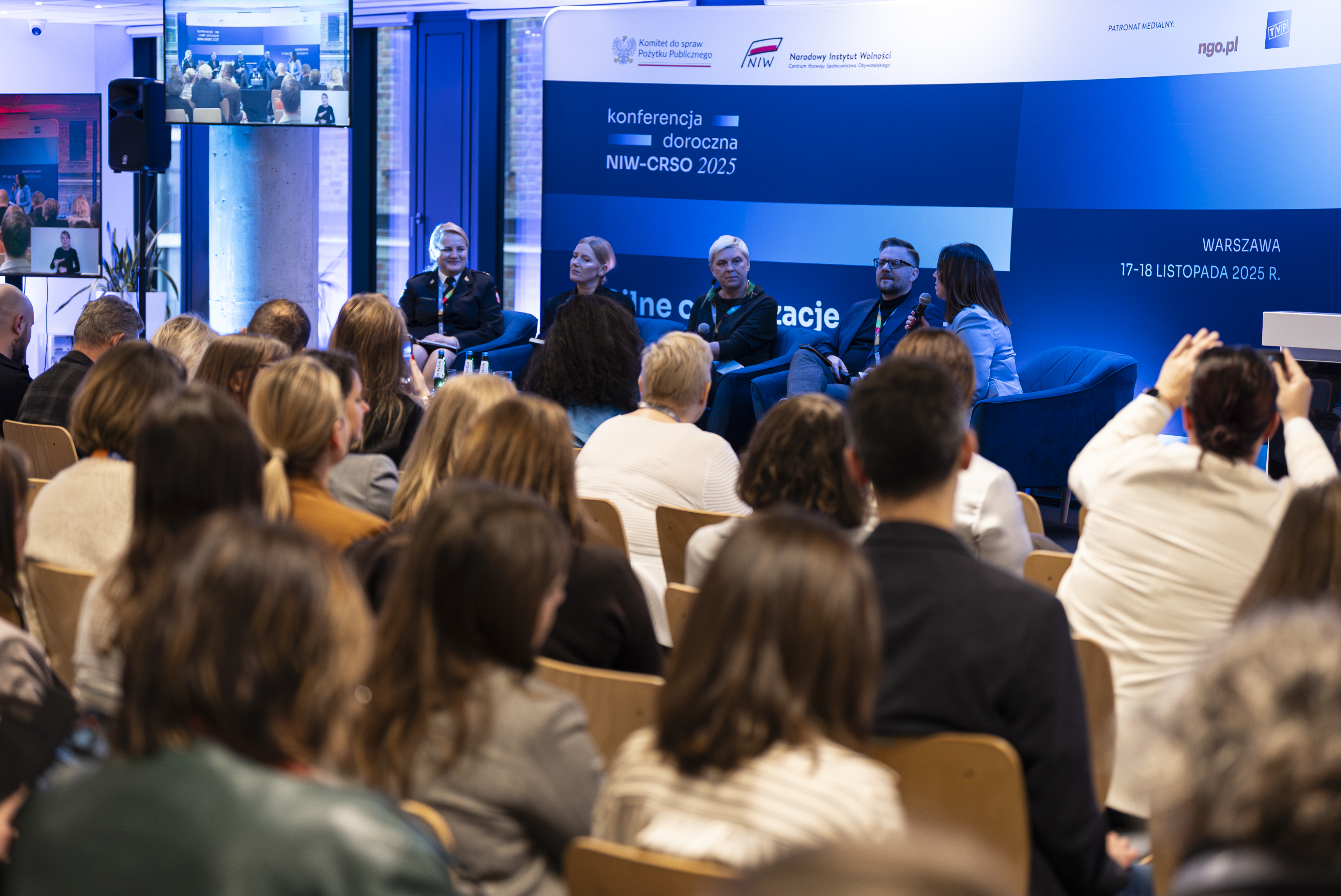 Centralnym punktem porannej części programu była debata poświęcona rządowemu programowi „Moc Małych Społeczności”, stworzonemu z inicjatywy Adriany Porowskiej, sekretarz stanu w KPRM, Wiceprzewodniczącej Komitetu do Spraw Pożytku Publicznego w celu wzmocnienia organizacji działających w mniejszych miastach i na obszarach wiejskich. Dyskusja oparta na doświadczeniach beneficjentów, którą prowadziła Ewa Kalbarczyk, zastępczyni dyrektora NIW-CRSO, pokazała napięcie między długofalową budową lokalnych więzi a tworzeniem natychmiastowej gotowości kryzysowej.
