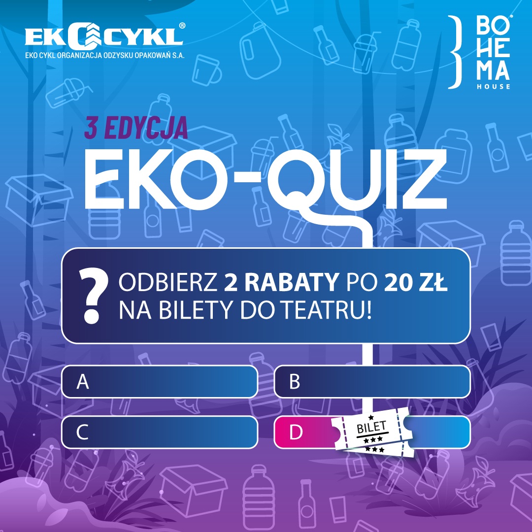 Ta kombinacja to udoskonalona formuła edukacji. Uczestnicy zabawy nie tylko wzmacniają swoją wiedzę o ochronie środowiska dzięki Eko-Quizowi, ale też mogą kupić taniej dwa bilety na wspólne wyjście do teatru na widowisko muzyczne z nutką ekologii.