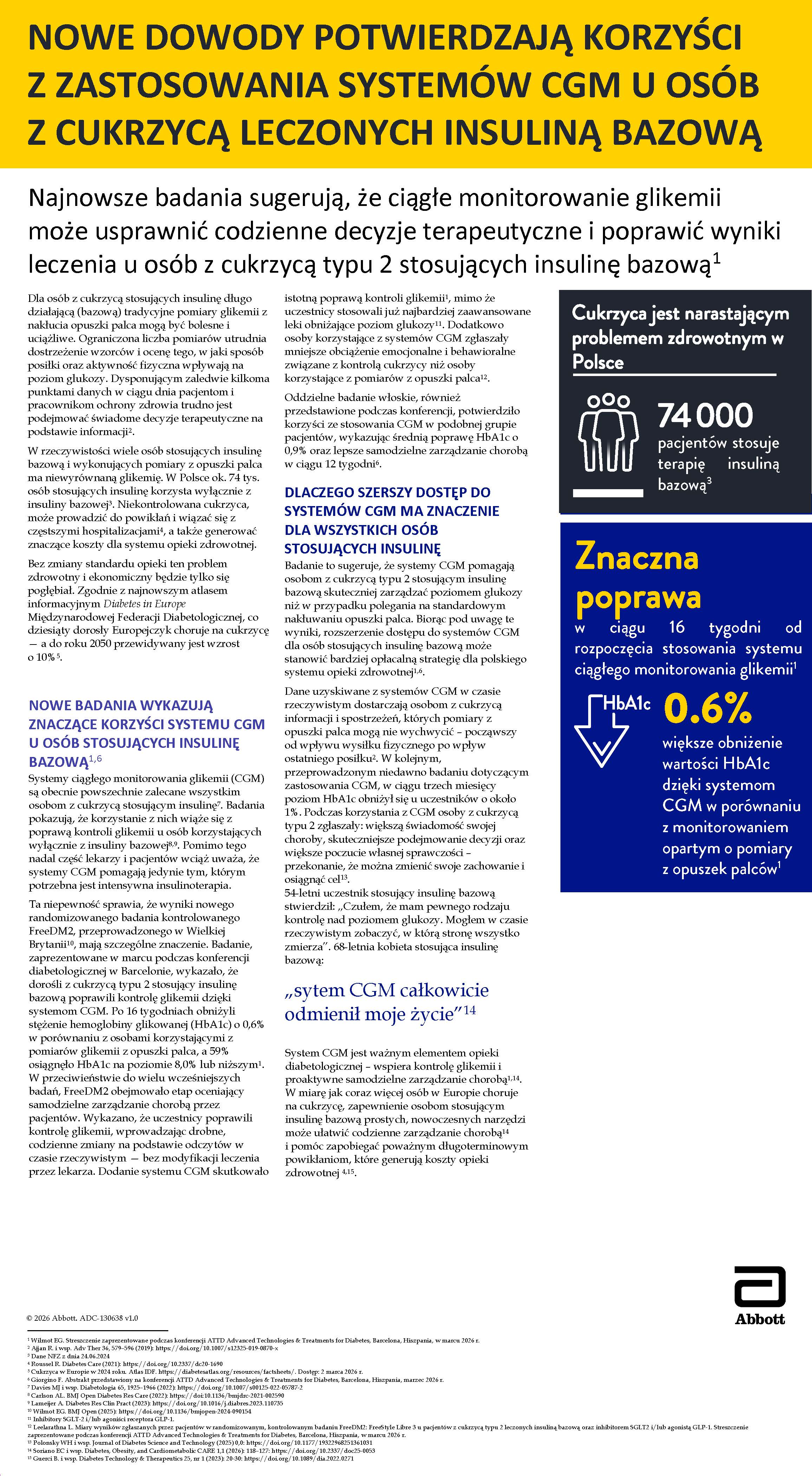 Nowe dane Abbott: ciągłe monitorowanie glikemii poprawia kontrolę cukrzycy u osób na insulinie bazowej