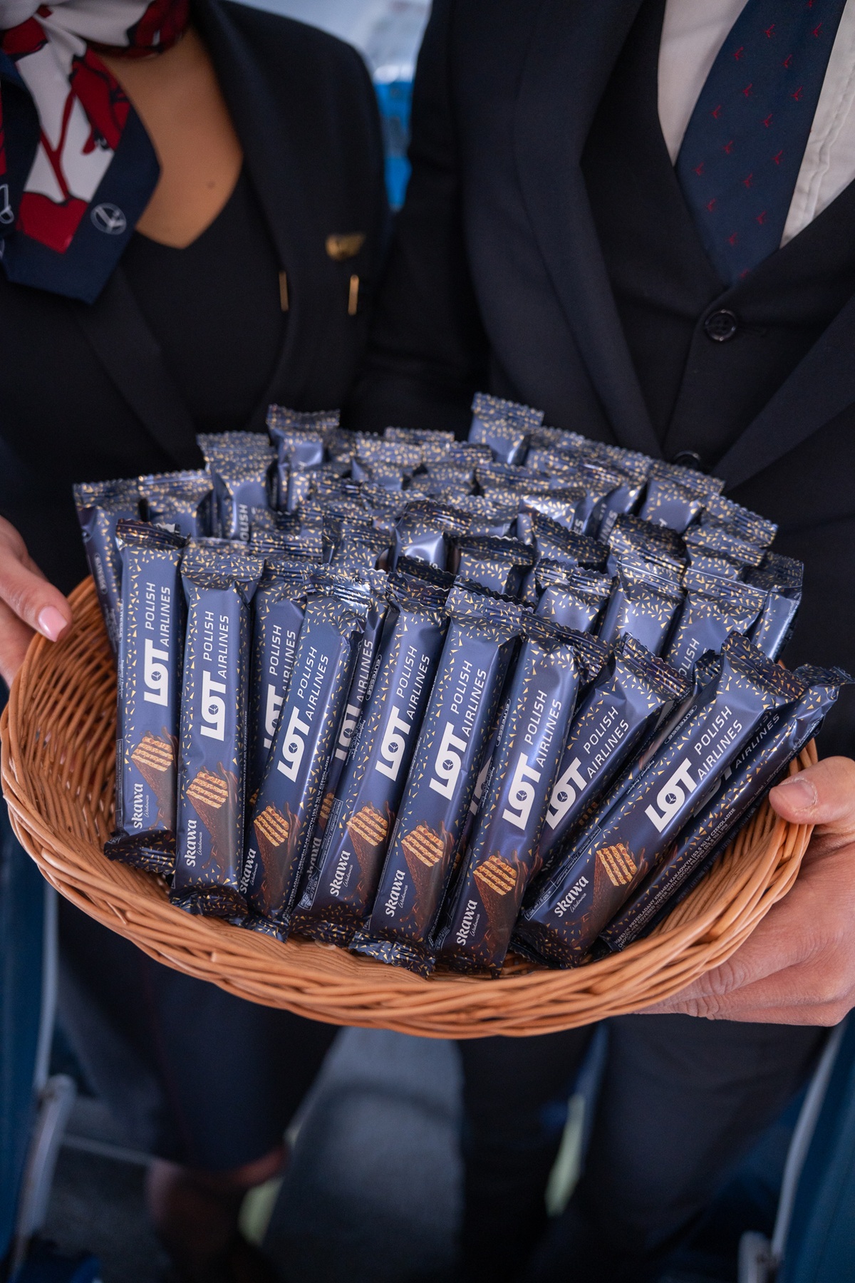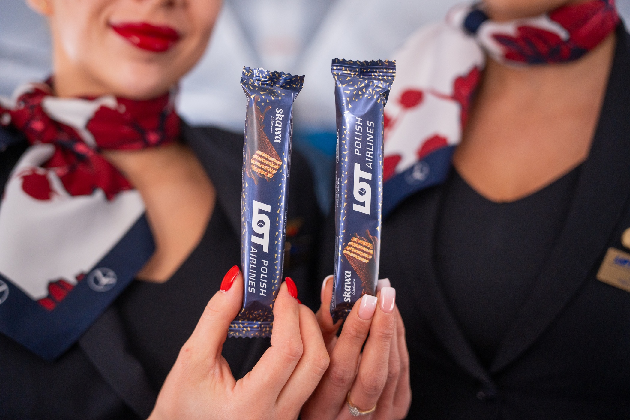 • Polskie Linie Lotnicze LOT wprowadzają na pokłady samolotów wafelki wyprodukowane przez polską firmę SKAWA. • To pierwsza słodka przekąska opracowana na wyłączność dla LOT-u, będąca wyrazem przywiązania do krajowych tradycji, gościnności oraz wysokiej jakości serwisu pokładowego. • Polskie Linie Lotnicze LOT konsekwentnie wspierają rodzimych producentów, promując polskie marki zarówno na pokładach swoich samolotów, jak i w przestrzeniach lotniskowych.