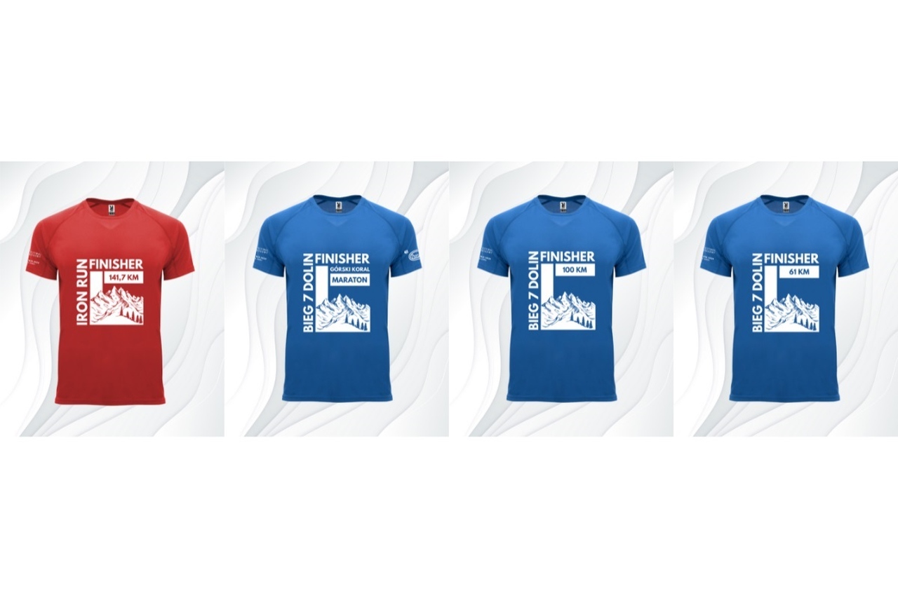 Krążki są unikatowe i pięknie wykonane. Znajduje się na nich nazwa wydarzenia, biegu i miejscowości, w której wszystko się odbywa. Całość dopełnia znakomicie prezentujący się zarys górskich szczytów. Naprawdę warto mieć je dla siebie. Podobnie jak unikalne koszulki finishera, zaprojektowane dla każdego z najdłuższych dystansów. Absolutnie świetna jest też specjalna koszulka premium, którą można zamówić podczas rejestracji na Festiwal Biegowy.