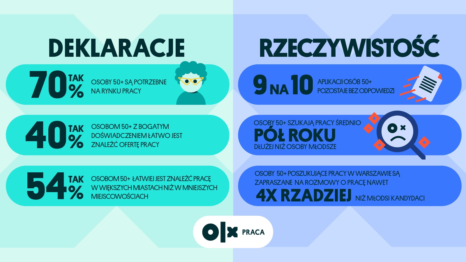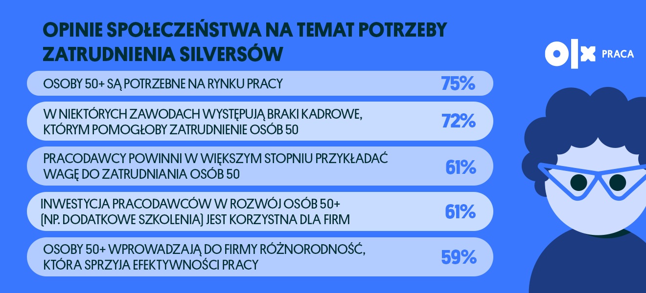 „Wystarczy wyzbyć się stereotypowego myślenia. Pracownicy z pokolenia 50+ stanowią ogromny potencjał dla każdej organizacji, są nie tylko doświadczonymi ekspertami, ale także doceniają stabilne zatrudnienie i są lojalni wobec pracodawcy” - podsumowuje ekspert serwisu OLX Praca. - Firmy sporo inwestują w kampanie rekrutacyjne skierowane do młodych, wchodzących na rynek pracy, jednak nie wkładają energii w wykorzystanie potencjału i atrakcyjności silversów. Pora to zmienić.