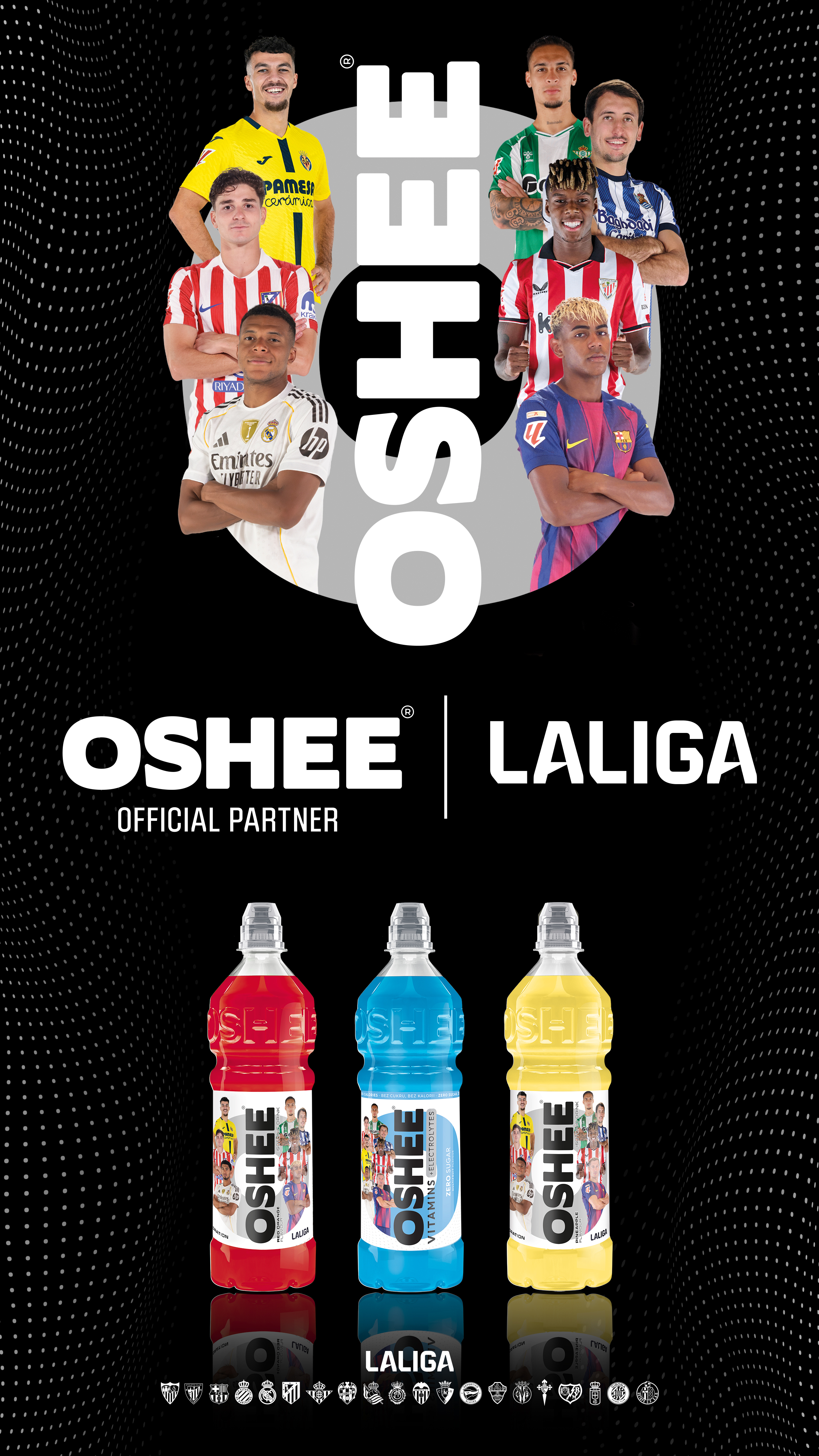 W ramach współpracy na objętych nią rynkach pojawią się napoje izotoniczne OSHEE z dedykowanymi etykietami inspirowanymi światem LALIGA. Etykiety będą prezentować wizerunki najbardziej rozpoznawalnych zawodników ligi m.in. Lamine Yamal, Kylian Mbappé, Jude Bellingham, Robert Lewandowski, Julián Álvarez, Nico Williams, Mikel Oyarzabal, Georges Mikautadze oraz Antony.