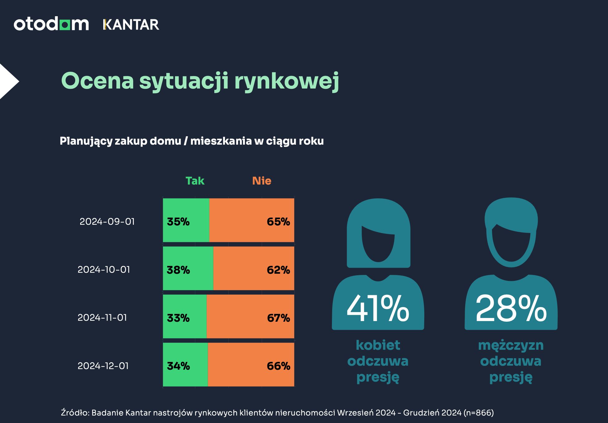 Jak wynika z raportu Otodom „Monitor nastrojów klientów nieruchomości” obawy przed dalszymi wzrostami cen nieruchomości słabną - w marcu odsetek osób spodziewających się podwyżek spadł do 52% z 68% we wrześniu. Mimo stabilizacji na rynku presję czasu nadal odczuwa ponad 1/3 kupujących, a 50% jego uczestników widzi potrzebę wprowadzania nowego rządowego programu mieszkaniowego, zwłaszcza sprzedający i najemcy. Rynek wtórny wyraźnie preferuje 50% poszukujących nieruchomości, a deweloperski - 20%.