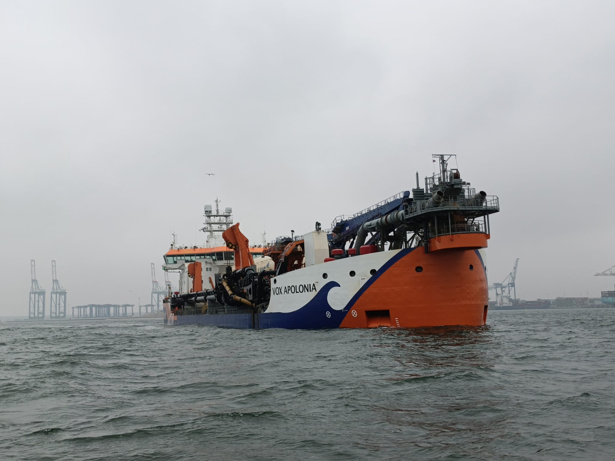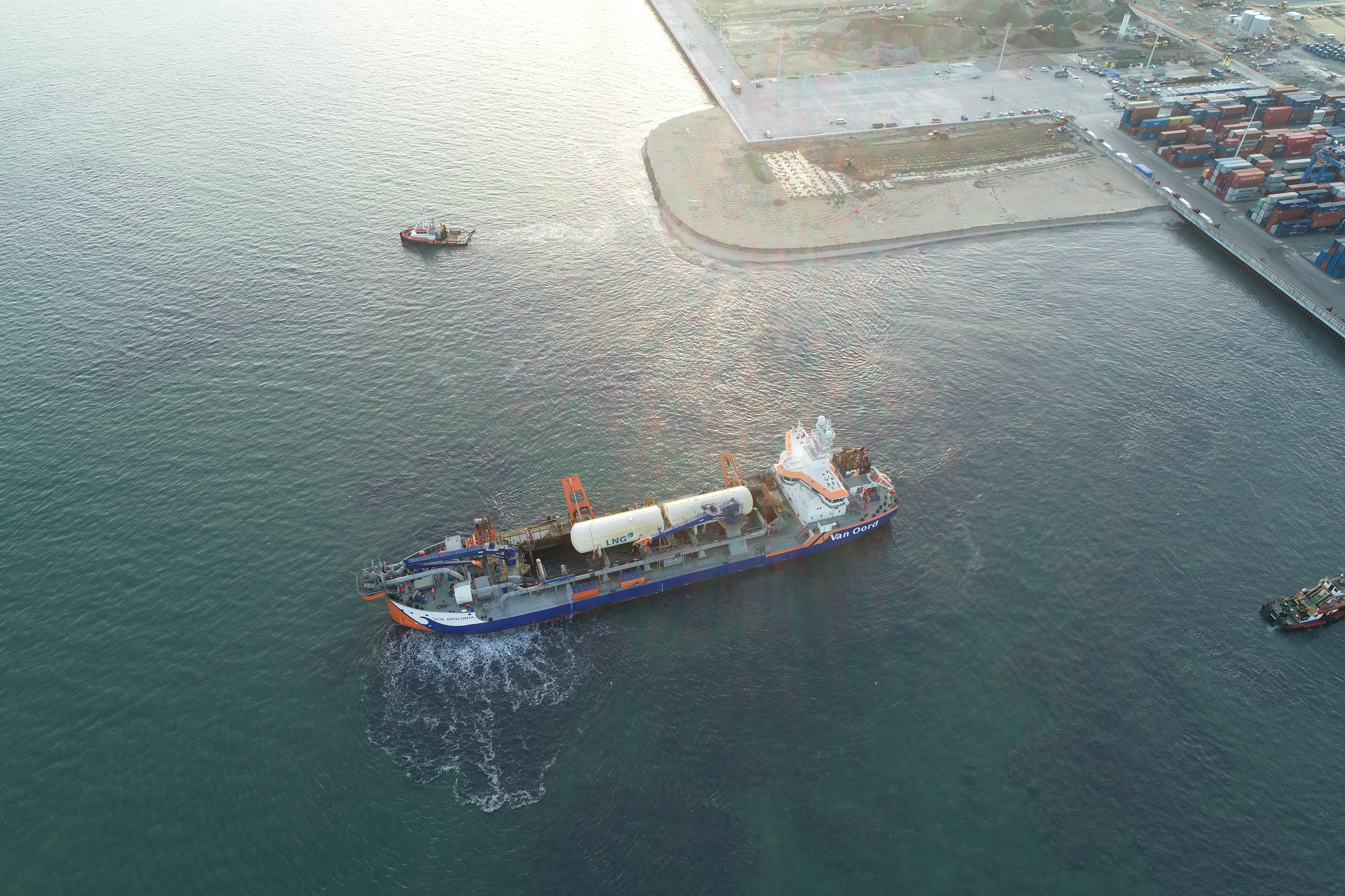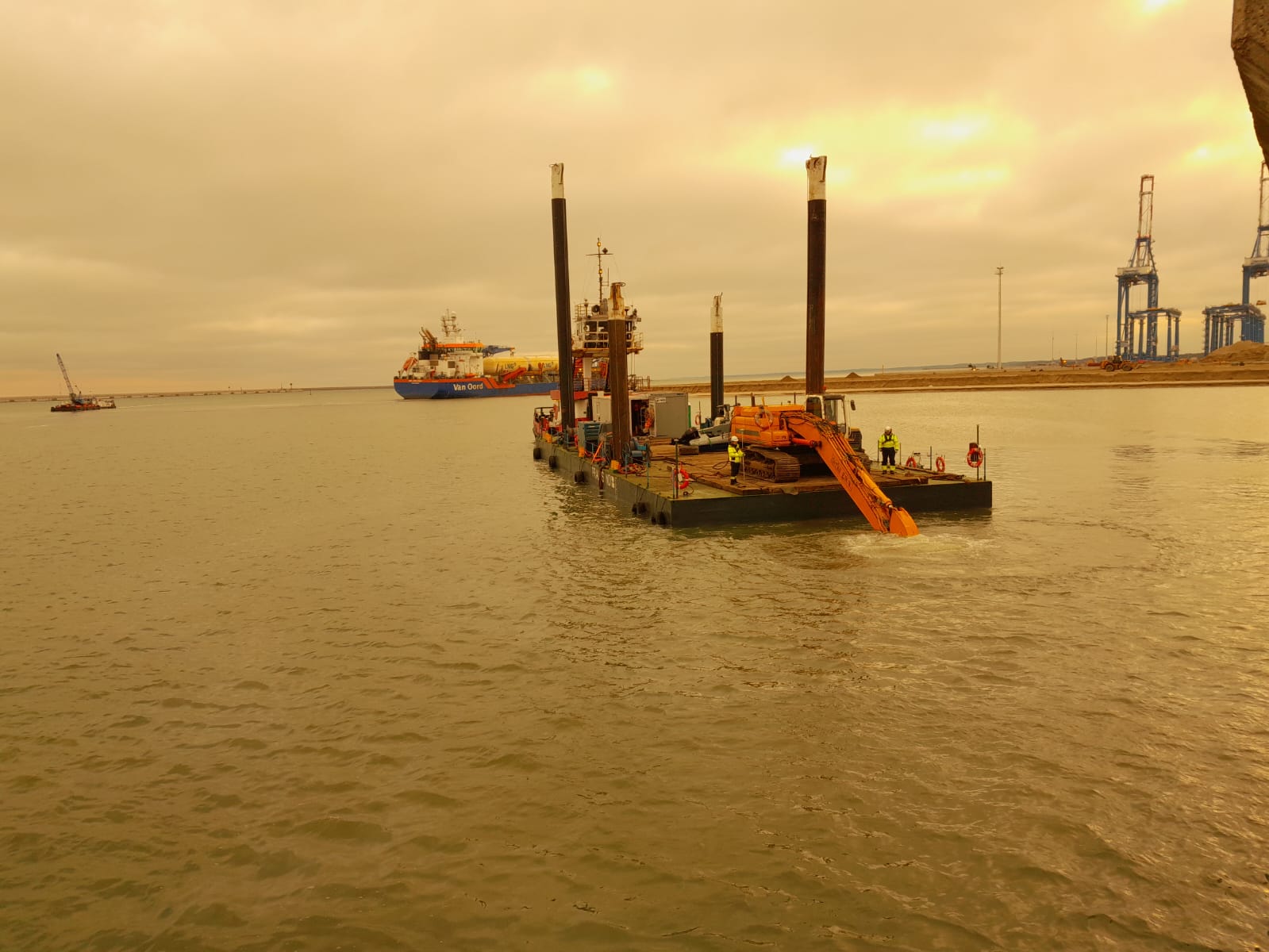 Budowa terminalu T5 to inwestycja o ogromnej skali. W styczniu 2025 r. zakończył się jej istotny etap - prace pogłębiarskie. W ich trakcie usunięto niemal 1 milion m3 urobku, przygotowując teren pod budowę sztucznej wyspy. Do dziś pogrążono już niemal 50 pali rurowych, stanowiących fundament przyszłej konstrukcji nabrzeża. Przewidywane ukończenie prac nastąpi w 3 kwartale 2026 r.