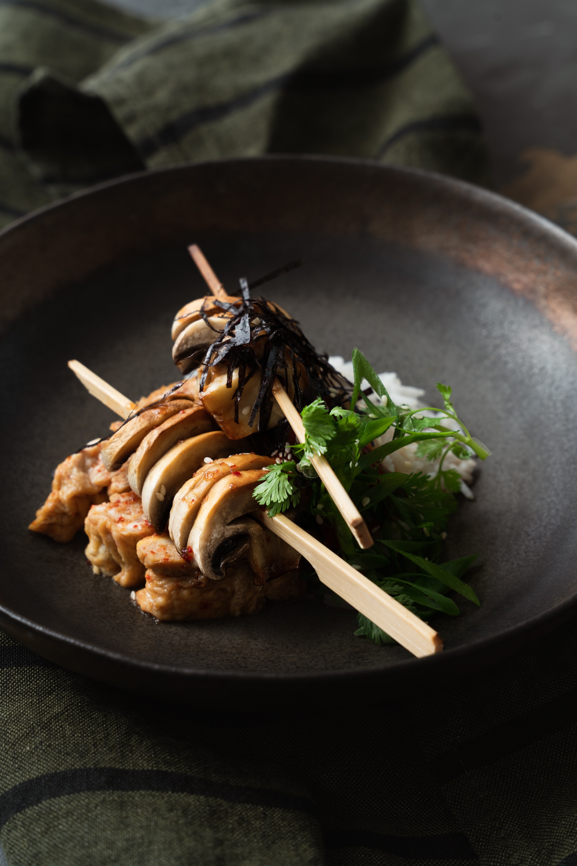 Satay z pieczarek glazurowany miodem z chili