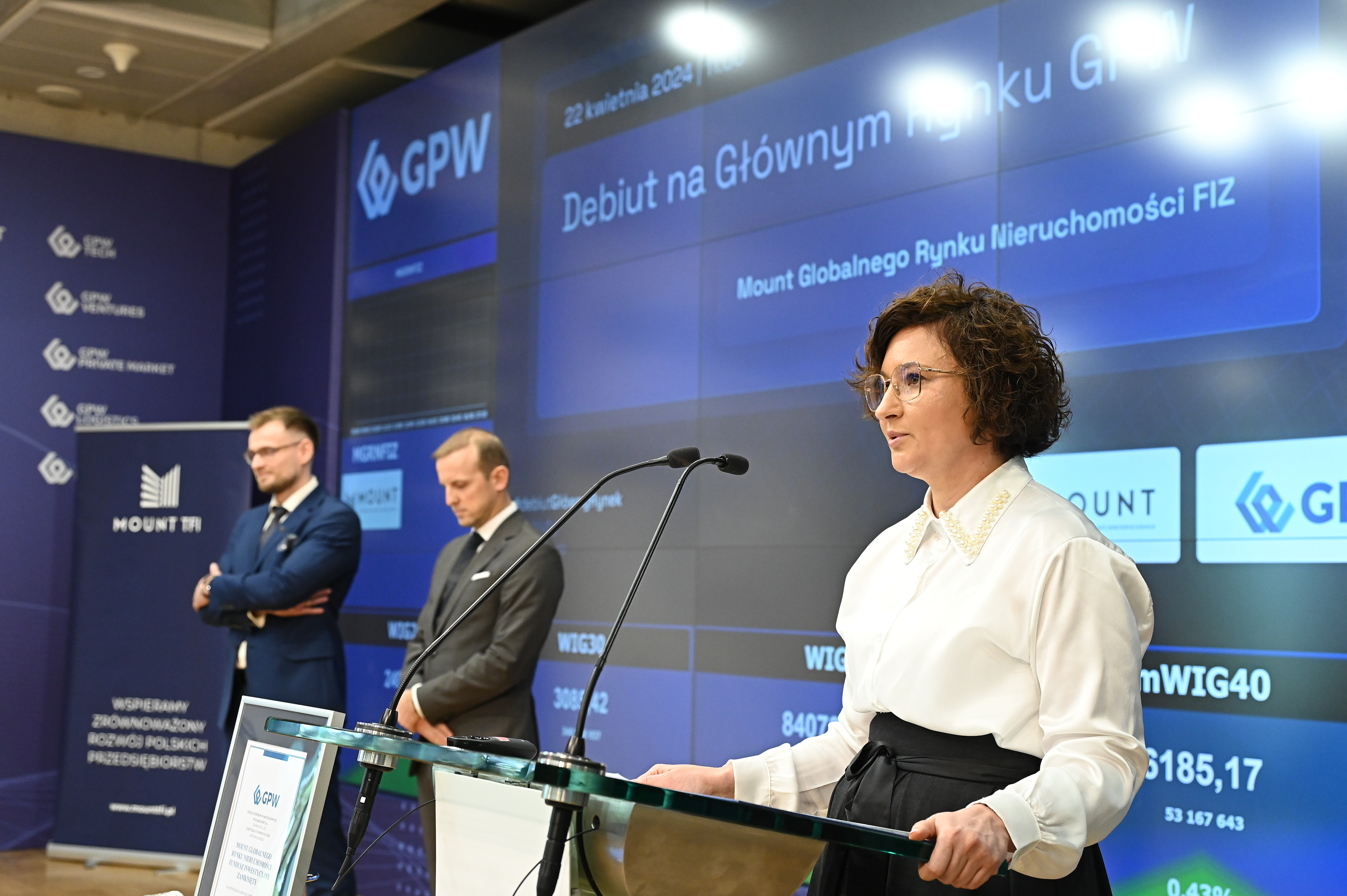 „Mount Globalnego Rynku Nieruchomości FIZ jest funduszem inwestycyjnym zamkniętym. Zamierza dążyć do realizacji celu inwestycyjnego, koncentrując się na lokatach, które dają ekspozycję na globalny rynek nieruchomości: głównie akcje spółek zagranicznych mających strukturę REIT-ów. Dzięki wprowadzeniu certyfikatów inwestycyjnych do obrotu na Giełdzie, Fundusz chce dać polskim inwestorom możliwość łatwego inwestowania w tę klasę aktywów” – powiedziała podczas debiutu Funduszu dr Monika Gorgoń, członek zarządu GPW.