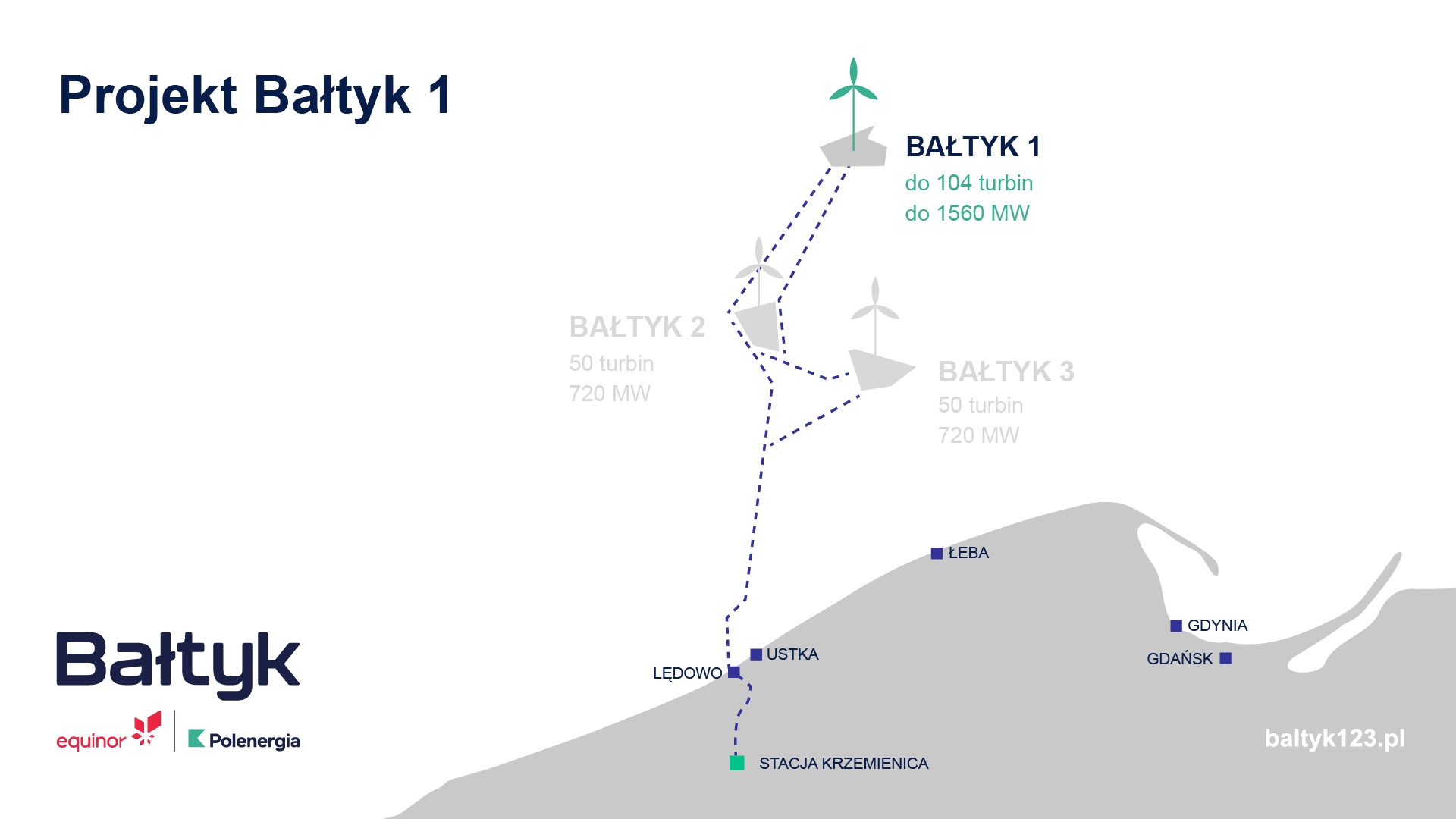 Projekt Bałtyk 1 jest rozwijany w odległości ok. 81 km od polskiego wybrzeża. Do realizacji morskiej farmy wiatrowej niezbędne są prace projektowe oraz komplet pozwoleń na budowę. Umowę, która obejmuje doradztwo w tym zakresie, Polenergia i Equinor podpisały z konsorcjum firm Ramboll i Projmors. Kontrakt dotyczy całości projektu Bałtyk 1 aż do osiągnięcia statusu „ready-to-build”.