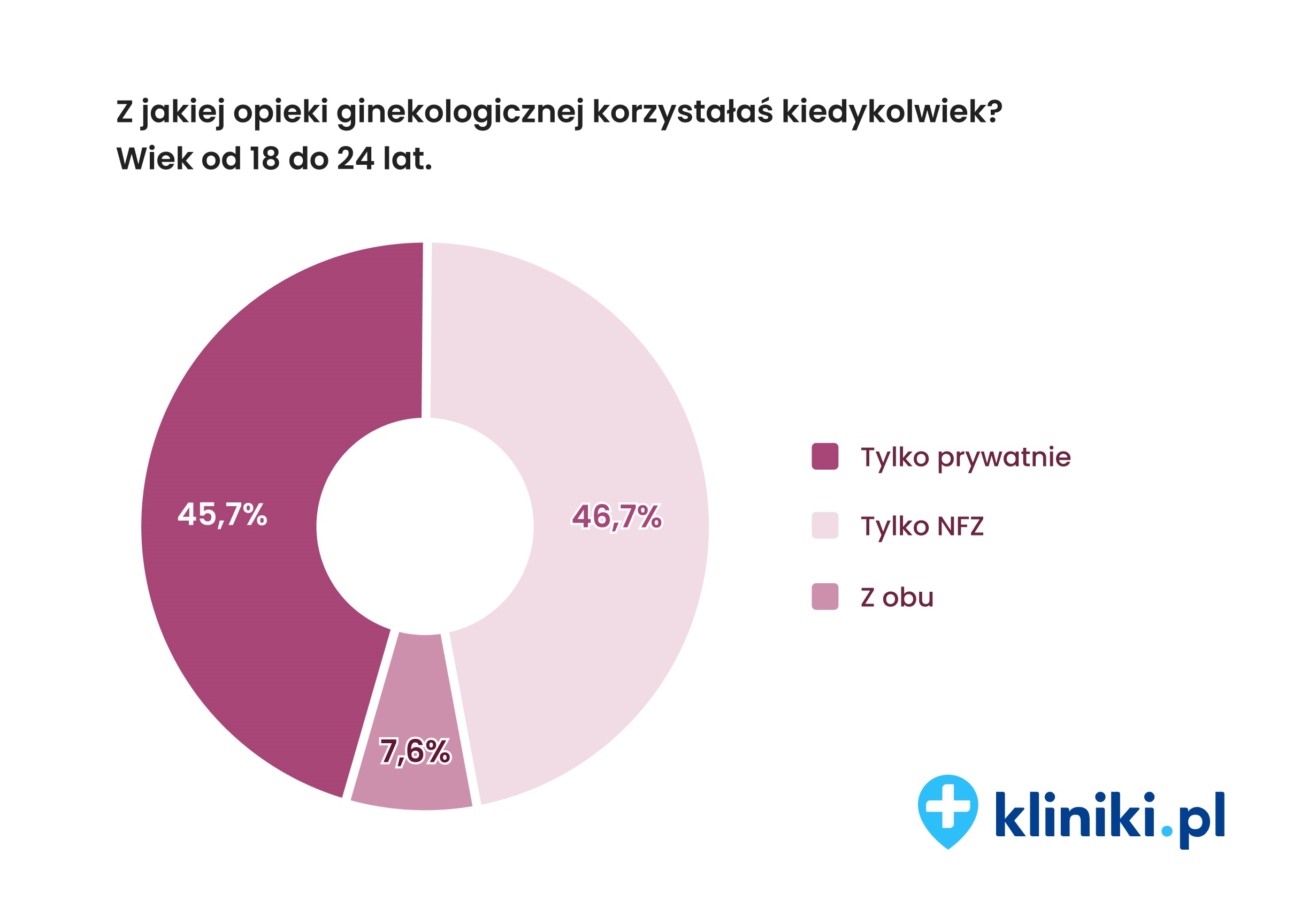 Raport wskazuje, że aż 60,5% Polek skorzystało kiedykolwiek z prywatnej opieki ginekologicznej, podczas gdy z usług ginekologicznych finansowanych przez Narodowy Fundusz Zdrowia (NFZ) korzystało 75,9% kobiet. Co istotne, tylko 39,5% Polek korzysta z usług ginekologicznych wyłącznie w ramach NFZ. To oznacza, że dla wielu kobiet publiczna opieka zdrowotna nie jest wystarczająco efektywna w zapewnieniu im odpowiedniej opieki ginekologicznej.