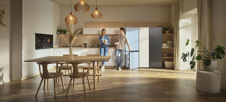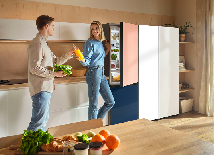 Idealnym rozwiązaniem dla osób, które chcą dopasować lodówkę do swojego wnętrza, ale również zmieniać jej front w dowolnym momencie, jest linia Bespoke. Modułowe lodówki Samsung Bespoke z wymiennymi frontami otwierają przed użytkownikami niemal nieograniczone możliwości w zakresie personalizacji. Dzięki zewnętrznym panelom, dostępnym w takich kolorach jak np. granat czy brzoskwinia, błękit oraz beż, z łatwością można dopasować wygląd urządzenia do stylu wnętrza i indywidualnych preferencji.