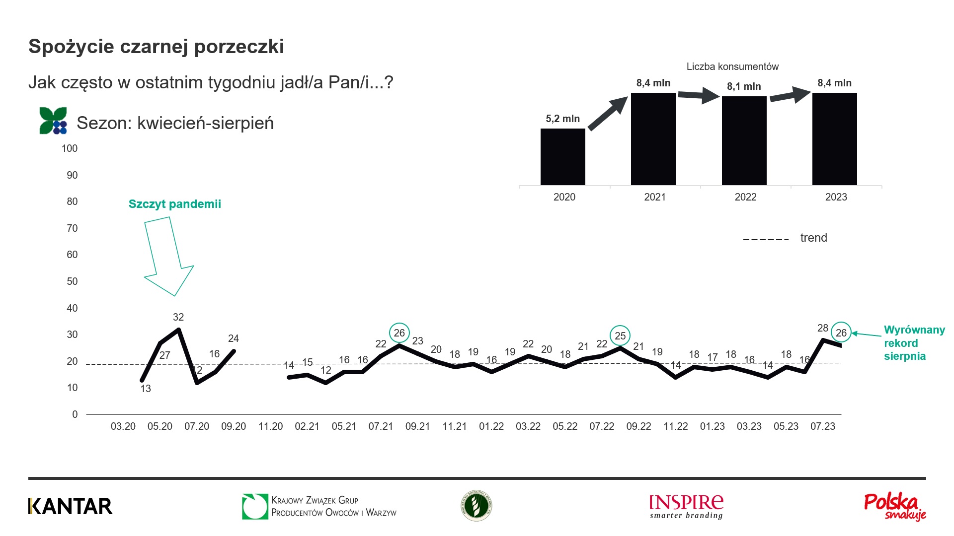 Porzeczki mają coraz więcej konsumentów, Kantar 2020-2023