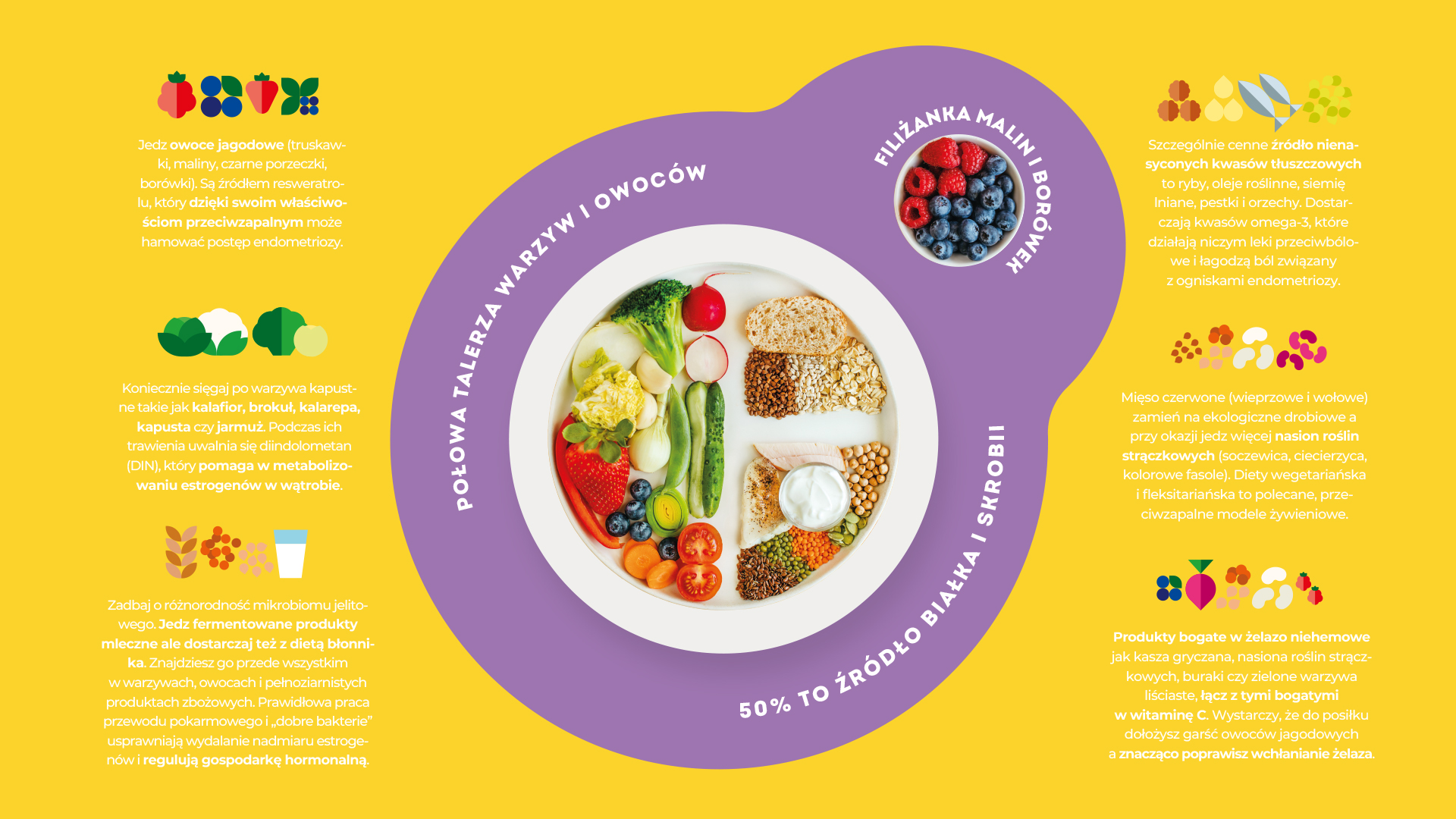 Więcej wskazówek żywieniowych w endometriozie, w tym szerszy zestaw infografik (na Instagram w nowych rozmiarach) znajdziesz tutaj.