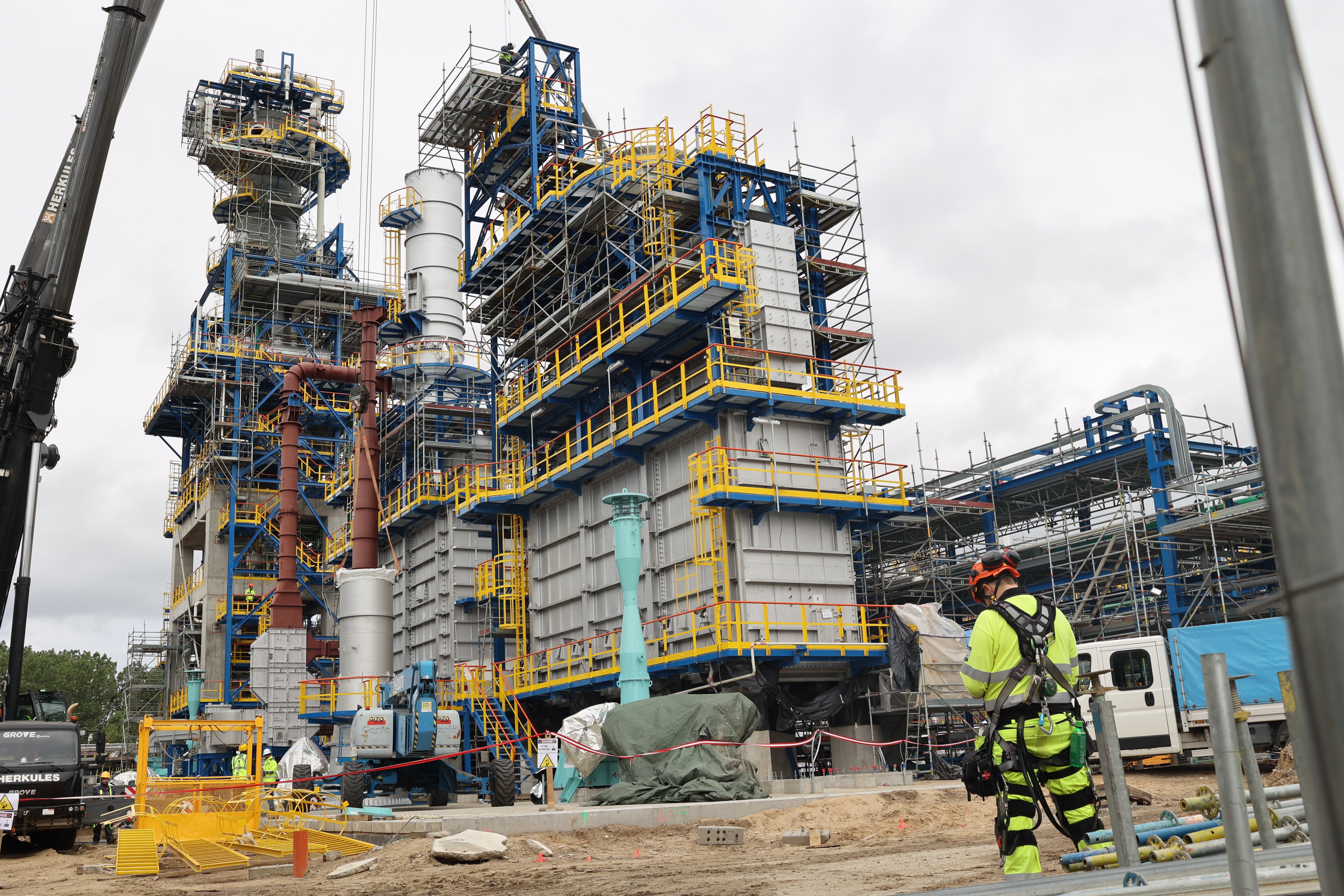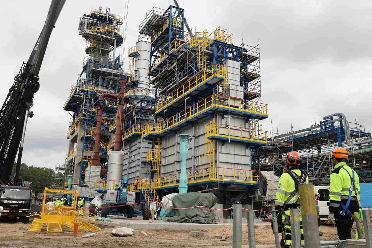 Do tej pory w ramach kontraktu typu projektuj i zbuduj posadowiono już najważniejsze urządzenia instalacji podstawowej i wybudowano zbiorniki magazynowe (wsadu i produktów). Trwa montaż dwóch pieców technologicznych. Na szczycie każdego z nich instalowane są kominy odprowadzania spalin, które ze względu na znaczne rozmiary i masę są montowane w częściach - z wykorzystaniem żurawia o udźwigu 200 ton.