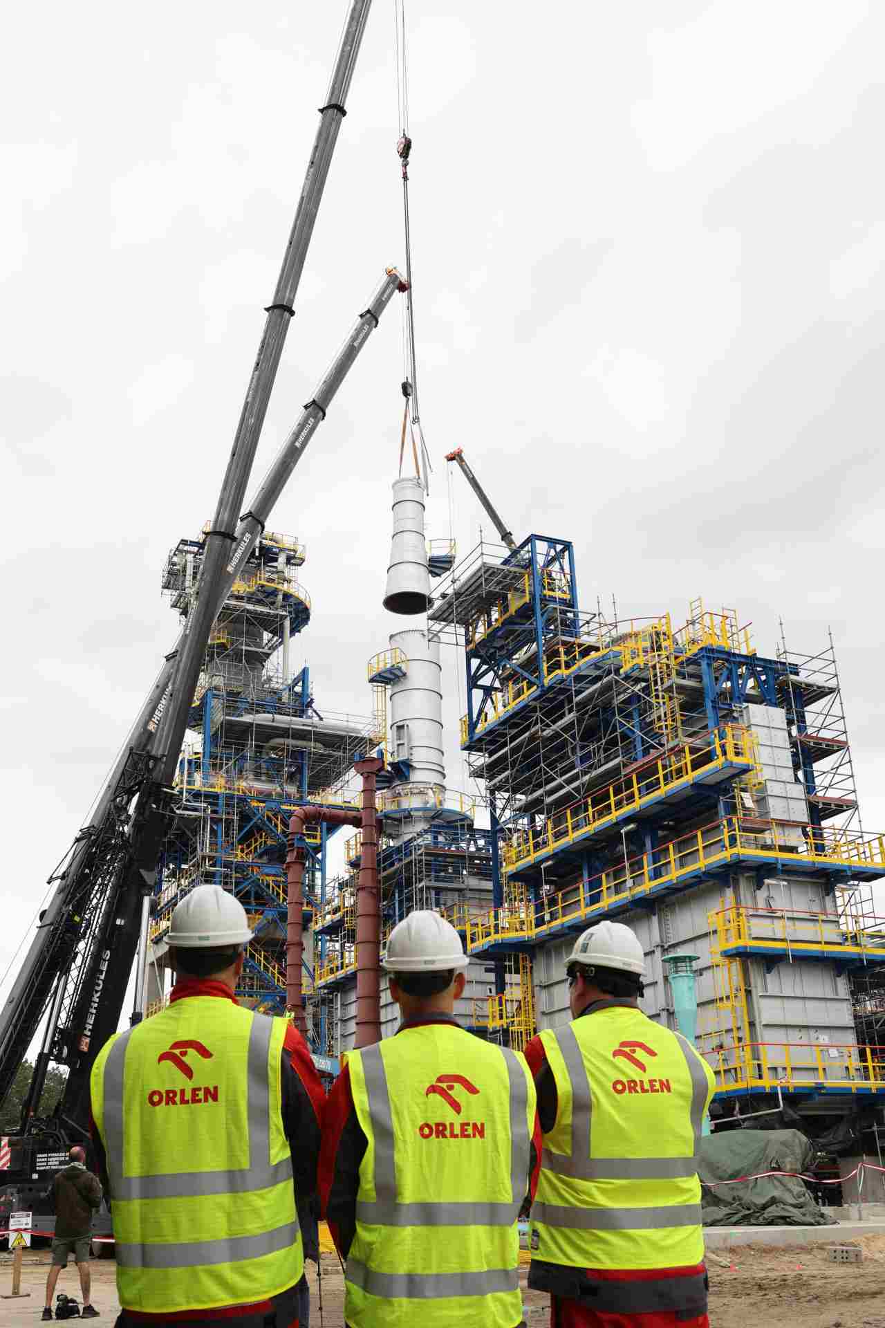 „Na terenie instalacji podstawowej zainstalowano już największe i najcięższe urządzenia: kolumnę destylacji próżniowej o wysokości prawie 40 m i ciężarze 109 ton, z której będą odbierane finalne produkty (oleje bazowe), oraz dwa reaktory o ciężarze 212 i 153 ton, służące do odparafinowania katalitycznego oraz hydrorafinacji, celem uzyskania odpornego na utlenianie, stabilnego produktu” - wyjaśnia Piotr Szczucki, kierownik projektu w Dziale Realizacji Projektu HBO.