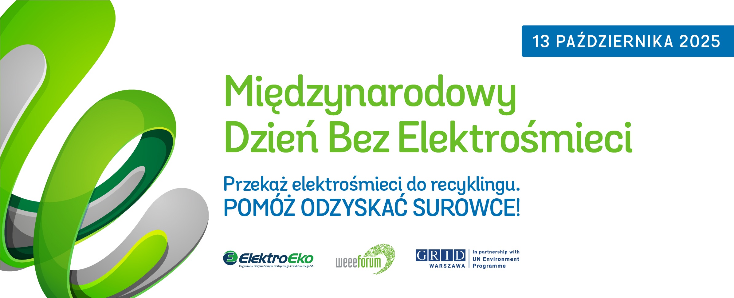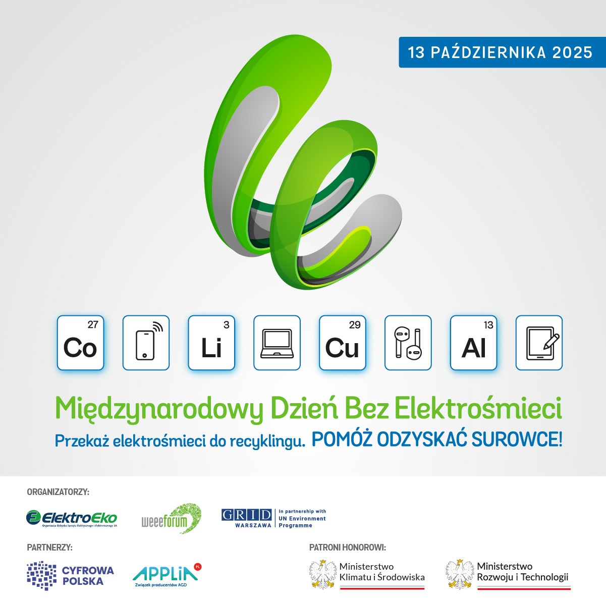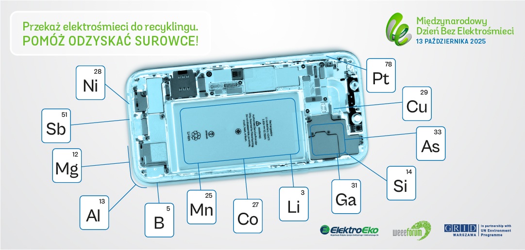 Jak co roku, 13 października 2025 r. z inicjatywy WEEE Forum obchodzimy Międzynarodowy Dzień Bez Elektrośmieci. W Polsce organizatorami wydarzenia są ElektroEko S.A. oraz UNEP/GRID-Warszawa a partnerami branżowymi: APPLiA Polska i Związek Cyfrowa Polska. Wydarzenie objęły honorowym patronatem Ministerstwo Klimatu i Środowiska oraz Ministerstwo Rozwoju i Technologii. Celem inicjatywy jest upowszechnienie zasad dotyczących przekazywania zużytego sprzętu do recyklingu.