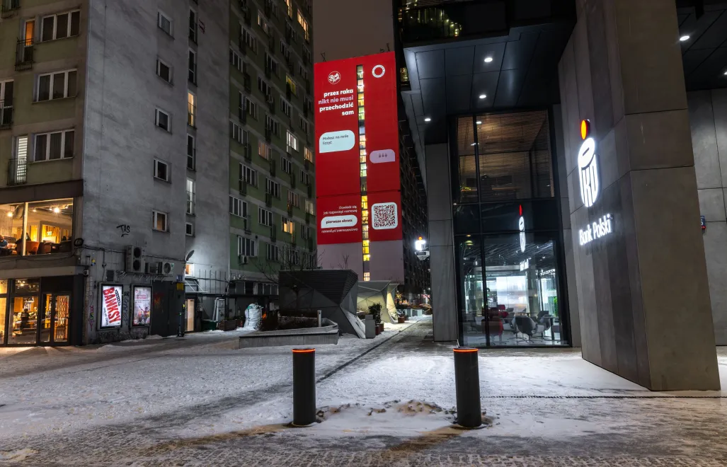 W samym sercu Warszawy, przy Rondzie ONZ, powstał wyjątkowy motion mural, który w prosty i wymowny sposób przypomina o sile relacji i znaczeniu obecności w chorobie. To najnowsza inicjatywa Fundacji Rak’n’Roll w ramach kampanii „Przez raka nikt nie musi przechodzić sam”. Rocznie w Polsce diagnozuje się około 180 tysięcy nowych przypadków raka. Wśród osób dotkniętych chorobą są nasi bliscy, przyjaciele, współpracownicy. Gdy dowiadujemy się o diagnozie, często nie wiemy, co powiedzieć i jak rozpocząć rozmowę. Z obawy przed niezręcznością wybieramy milczenie, a osoby chore pozostają same. To zjawisko określane jest jako „cancer ghosting”. Mural można oglądać do 27 lutego br.