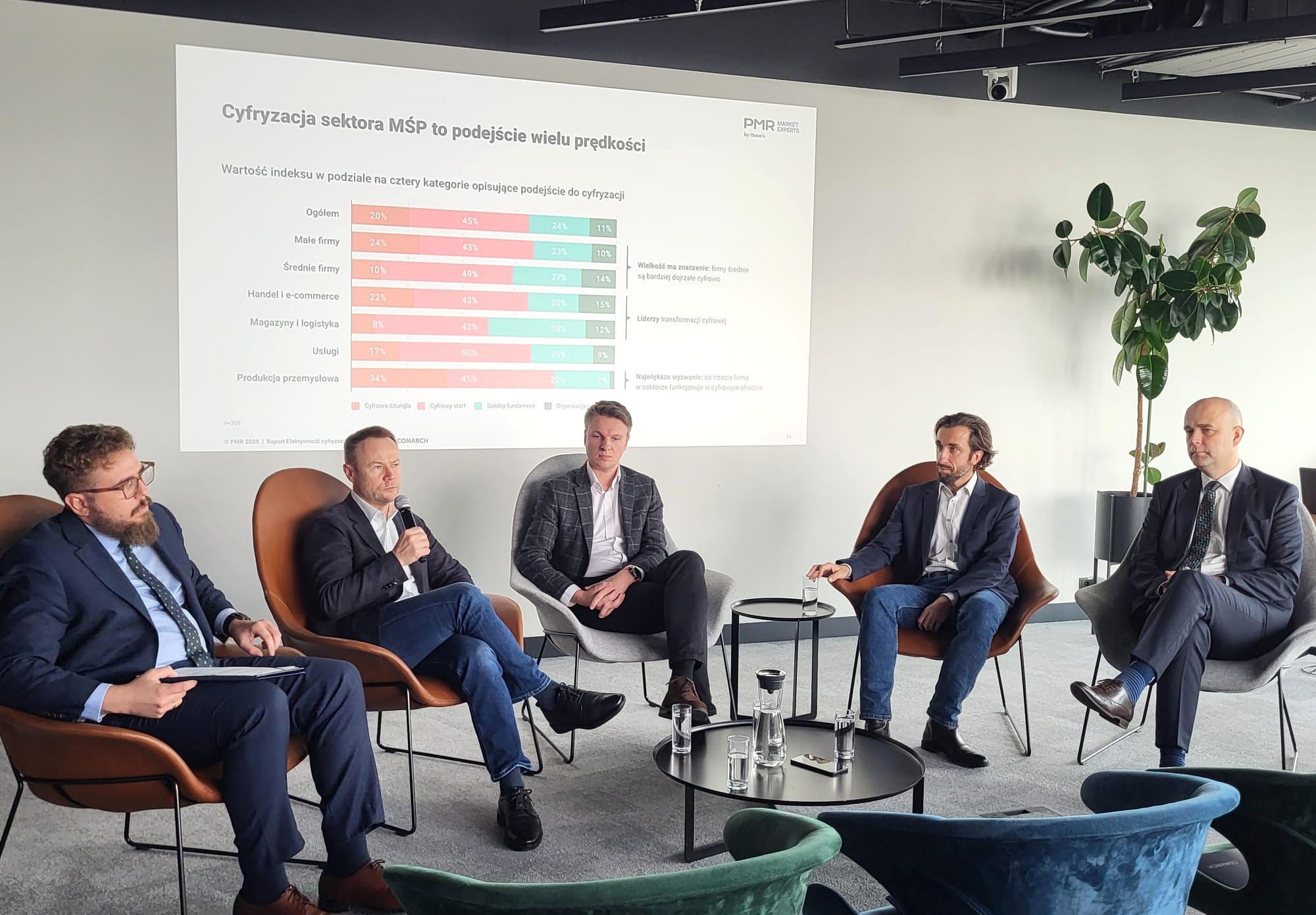 „Stworzyliśmy Indeks Cyfryzacji, czyli specjalny test składający się z 13 pytań dotyczących poszczególnych obszarów działania firm. Po wypełnieniu testu uczestnik otrzymuje wynik wraz z diagnozą stanu swojej organizacji oraz rekomendacjami” - powiedział Zbigniew Rymarczyk.