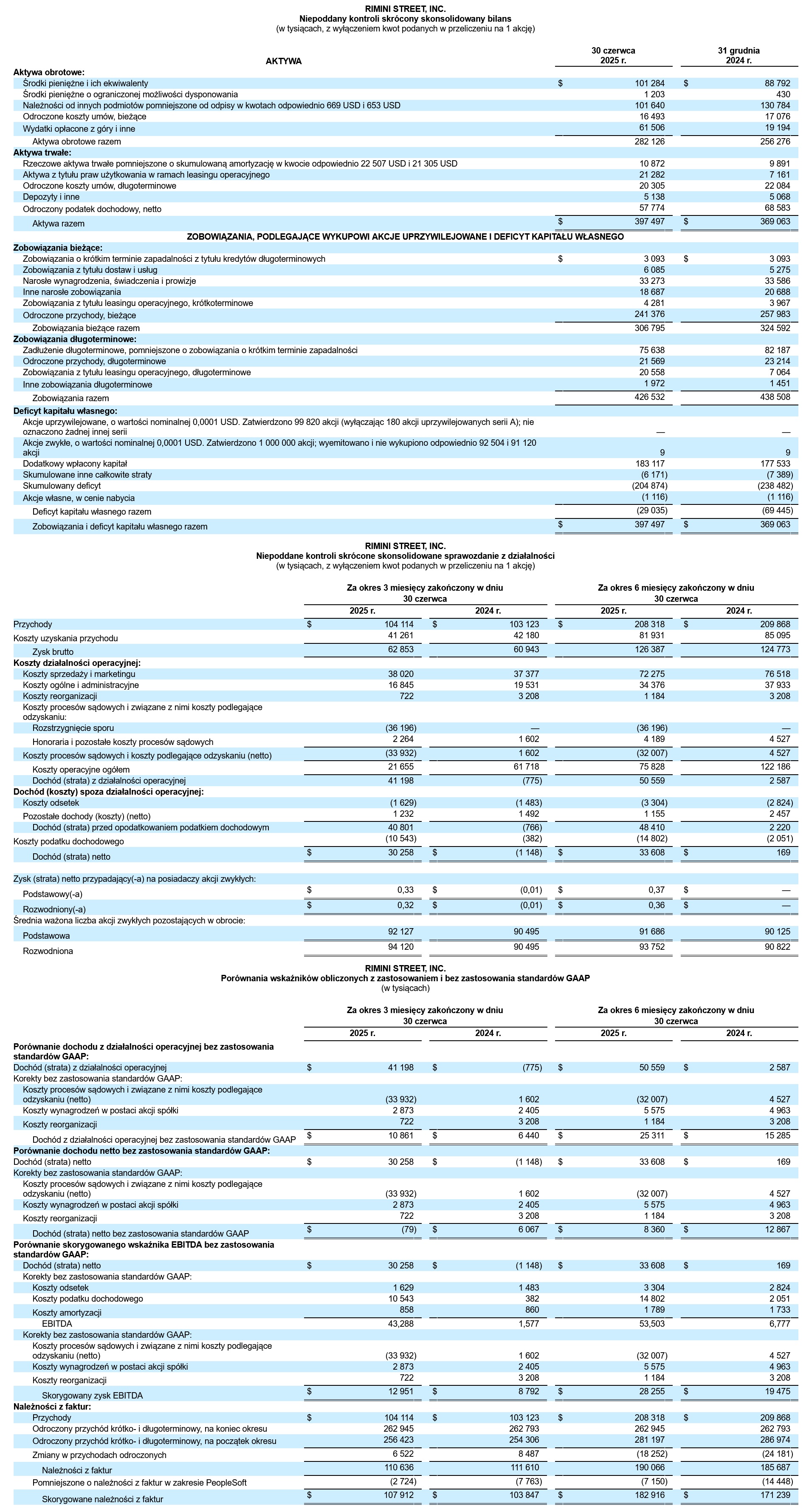 LAS VEGAS--(BUSINESS WIRE)-- Rimini Street, Inc., („spółka”) (Nasdaq: RMNI), dostawca kompleksowego wsparcia w zakresie oprogramowania firmowego oraz innowacyjnych rozwiązań o zasięgu globalnym, wiodący podmiot zewnętrzny świadczący usługi wsparcia dla oprogramowania Oracle, SAP i VMware, ogłosił dzisiaj wyniki finansowe za II kwartał 2025 roku zakończony dnia 30 czerwca 2025 roku.