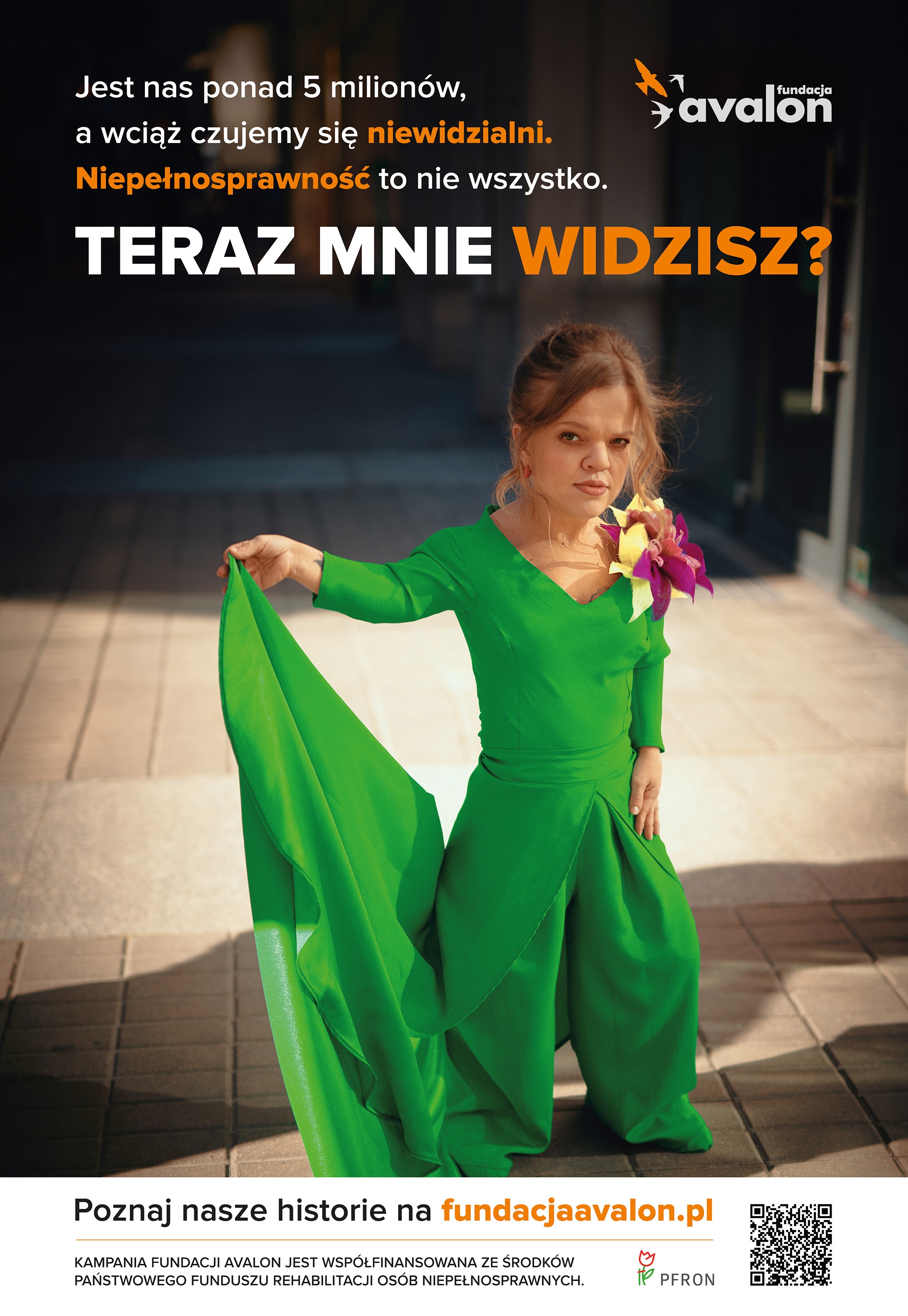 Fundacja Avalon pragnie świata bez barier, w którym osoby z niepełnosprawnościami są aktywne w każdej sferze życia i mają szansę na realizację swoich planów oraz ambicji. Dlatego, już po raz szósty, w ogólnopolskiej kampanii społecznej głośno przemówią osoby z niepełnosprawnościami i pokażą, że niepełnosprawność to nie wszystko. Bohaterowie reprezentujący ponad 5 milionów OzN żyjących w Polsce, mówią wprost, że „często czują się po prostu niewidoczni i muszą bardzo mocno, wyraźnie i głośno akcentować swoją osobowość, by zostać zauważonymi”. Nowa kampania Fundacji Avalon przekornie pyta odbiorcę, czy „Teraz mnie widzisz?” i odpowiada na najważniejsze pytania, dotyczące niewidoczności osób z niepełnosprawnościami w Polsce.