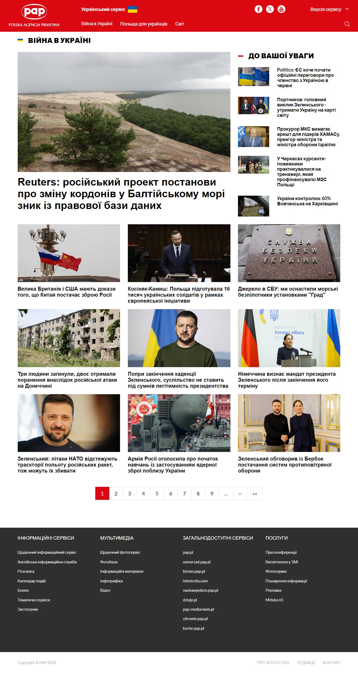 PAP jest największą i najstarszą agencją informacyjną w Polsce, posiadającą redakcje i dziennikarzy na całym świecie. Przez całą dobę, 7 dni w tygodniu 250 dziennikarzy i 40 fotoreporterów przygotowuje serwisy informacyjne, z których korzystają media, instytucje, urzędy państwowe i biznes. W marcu 2022 r., po rozpoczęciu pełnoskalowej inwazji Rosji na Ukrainę PAP uruchomiła w ramach PAP.PL ukraińskojęzyczny serwis relacjonujący sytuację wojenną, też pełniący rolę centrum informacyjnego dla uchodźców z Ukrainy, opisujący drogę Ukrainy do UE i NATO, poruszający problematykę bezpieczeństwa regionalnego oraz zachodniej pomocy objętemu wojną krajowi. Oprócz tego serwis opisuje losy i doświadczenia zwykłych Ukraińców zarówno w swoim kraju, jak i w Europie.