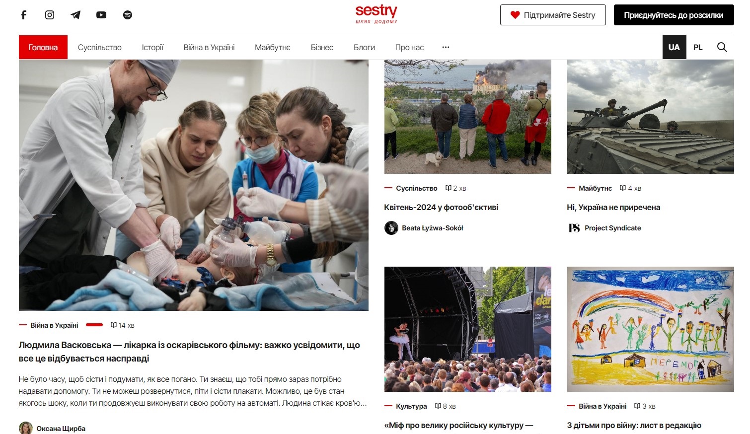 „Magazyn Sestry.eu, który początkowo powstał jako inicjatywa wspierająca ukraińskie uchodźczynie, przekształcił się w istotną w przestrzeni medialnej platformę dialogu polsko-ukraińskiego. Dzisiaj, gdy Ukrainki i Ukraińcy stali się ważną częścią naszego społeczeństwa, a skonfliktowanie państw zachodnich, w szczególności Polski i Ukrainy, jest jednym z głównym celów rosyjskiej propagandy, naszą misją jest zapewnienie dostępu do informacji, które łączą, a nie dzielą, budują zaangażowanie społeczne i wspierają nasze wspólne, europejskie wartości” - mówi Joanna Mosiej-Sitek prezeska Fundacji Media Liberation Fund, wydawcy sestry.eu.