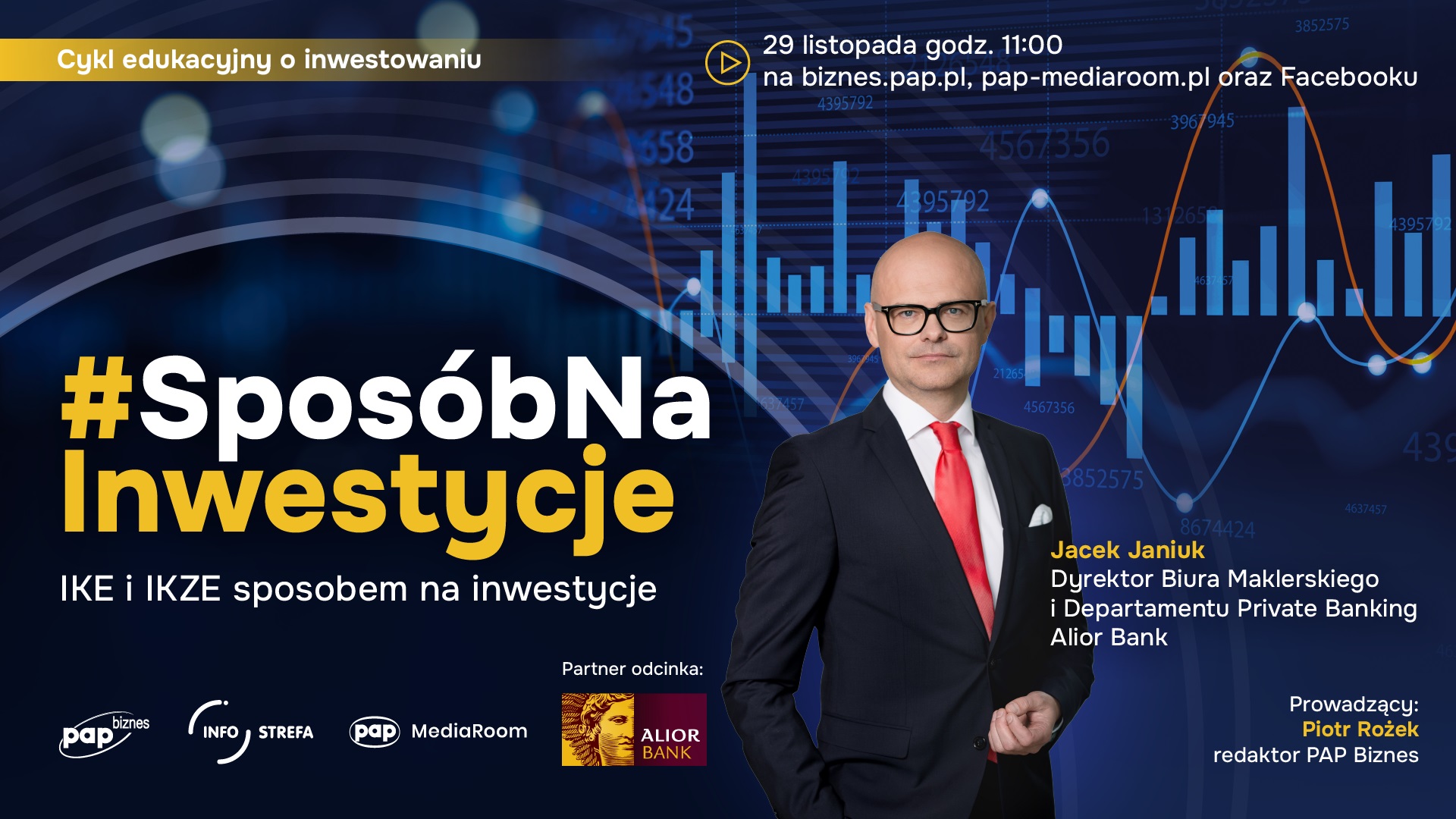 Rusza nowy projekt edukacyjny PAP Biznes o inwestowaniu w ujęciu indywidualnym. 29 listopada gościem pierwszego odcinka cyklu #SposóbNaInwestycje będzie Jacek Janiuk, dyrektor Biura Maklerskiego i dyrektor Departamentu Private Banking Alior Banku, z którym porozmawiamy o oszczędzaniu poprzez Indywidualne Konta Emerytalne i Indywidualne Konta Zabezpieczenia Emerytalnego oraz zapytamy, dlaczego warto rozważyć tego typu inwestycje.