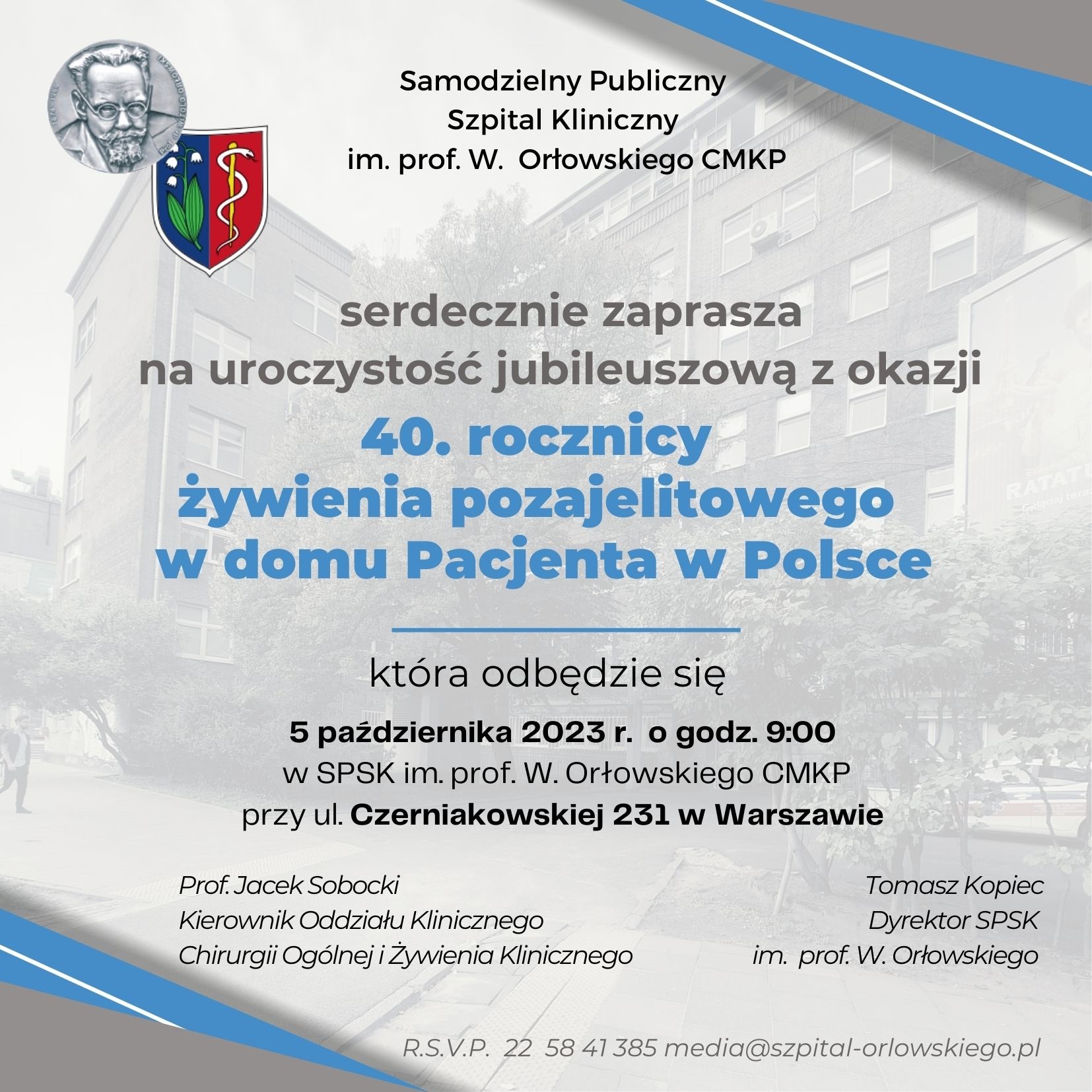 SPSK im. prof. W. Orłowskiego CMKP organizuje jubileusz 40-lecia żywienia pozajelitowego w Polsce