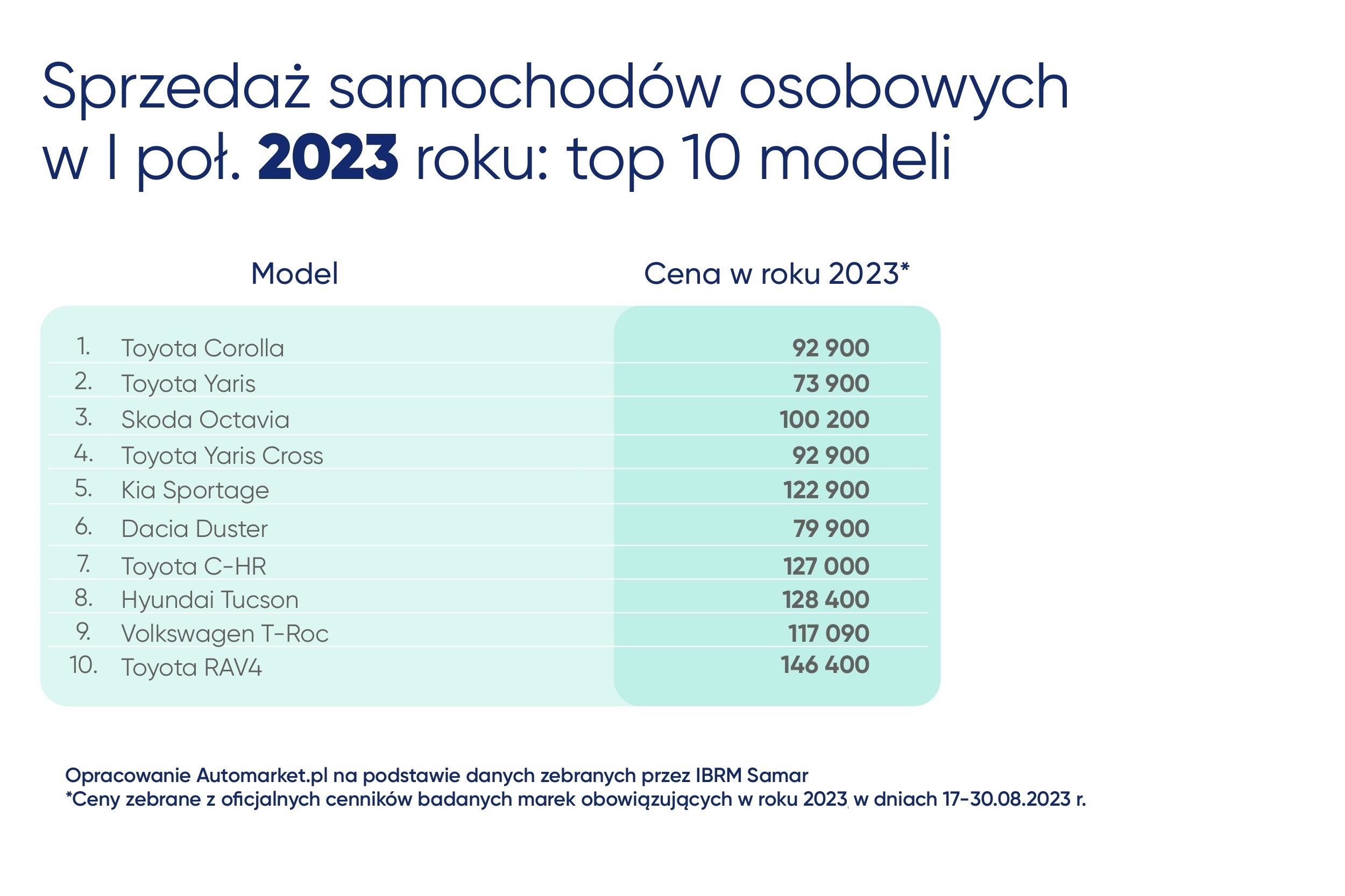 Z archiwalnych danych sprzedażowych zgromadzonych przez Instytut Samar wynika, że w roku 2003 najchętniej kupowano Skodę Fabię, której (według cenników z tamtego okresu) podstawowa wersja kosztowała wówczas ok. 35 tys. zł. Drugim najpopularniejszym modelem był Fiat Seicento, kosztujący w przybliżeniu min. 25 tys. zł, a trzecim Fiat Punto (wyjściowo ok. 35 tys. zł). Cena aktualnie dostępnej Skody Fabii zaczyna się od 66,5 tys. zł (niemal dwukrotny wzrost względem 2003 r.), zaś cena modeli marki Fiat wzrosła prawie trzykrotnie - Fiat 500, którego można uznać za następcę Fiata Seicento, kosztuje min. 67 tys. zł, a zajmujący w gamie tego producenta podobne miejsce jak niegdyś Punto, model 500X - aż 98,5 tys. zł. Największy skok cenowy wśród dziesięciu najchętniej kupowanych w 2003 roku modeli odnotował natomiast Ford Focus - na przestrzeni 20 lat jego cena wzrosła z ok. 45 tys. zł do 131 tys. zł obecnie.
