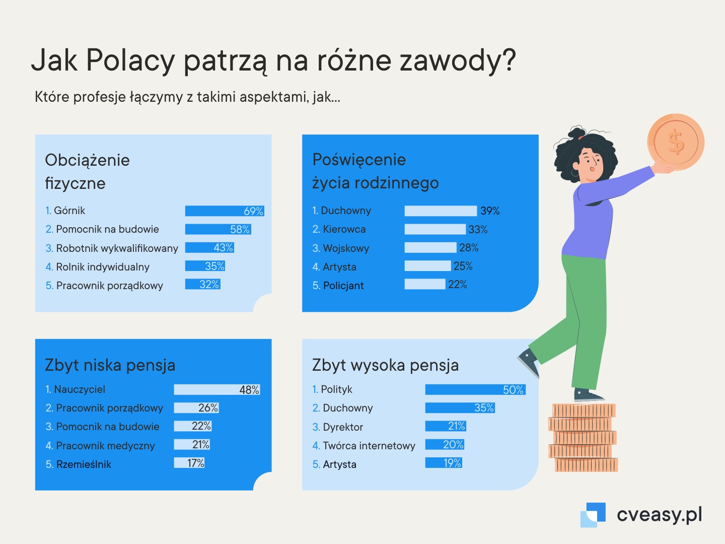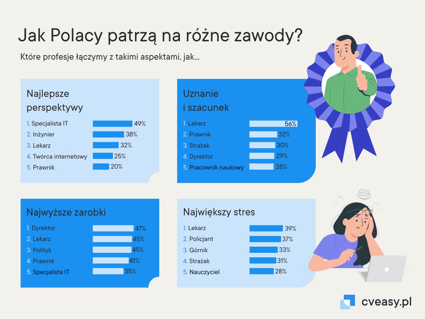 - Autorzy serwisu CVeasy.pl we współpracy z agencją Elephate sprawdzili, jak Polki i Polacy postrzegają różne stanowiska pracy. W badaniu wzięło udział 586 osób z całego kraju.