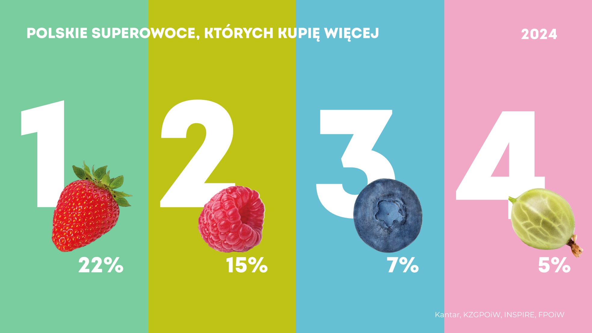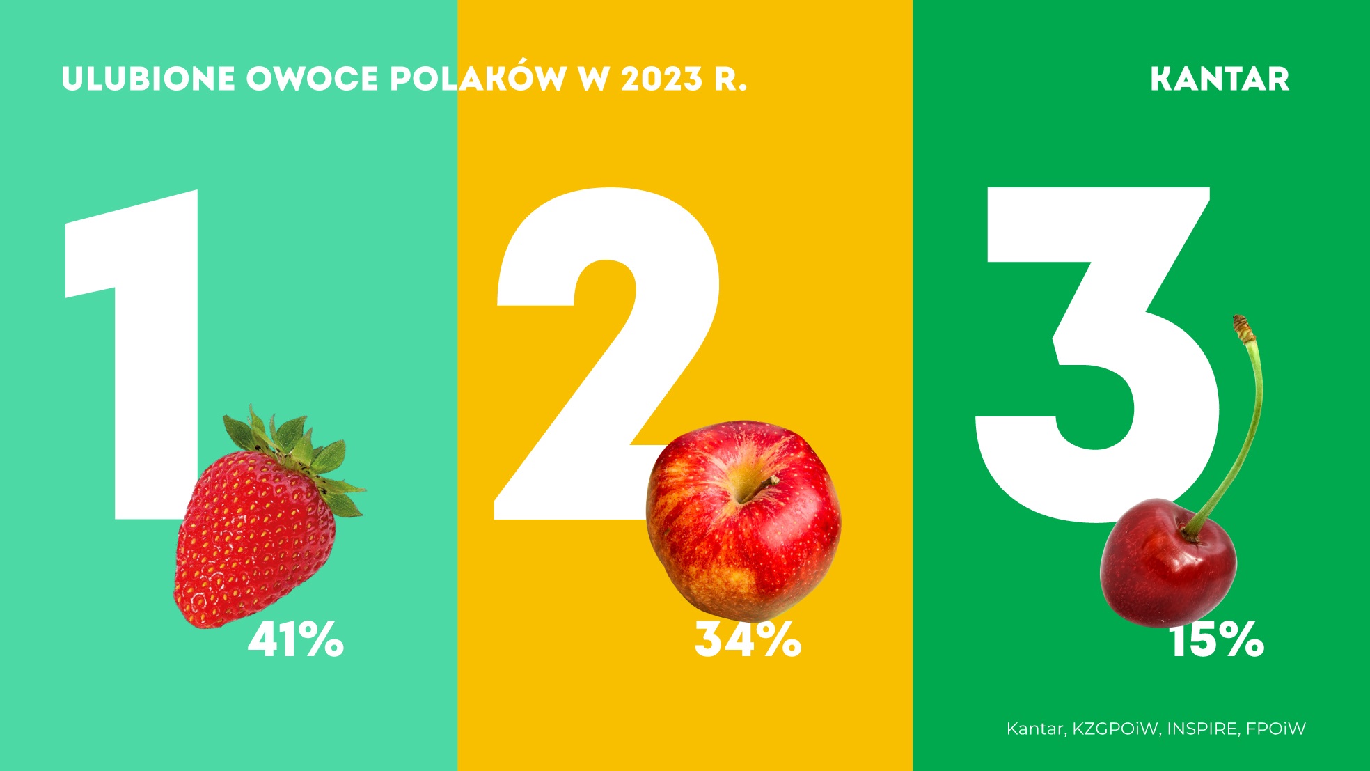 Truskawki są ulubionym owocem Polaków (41%). W badaniach podsumowujących sezon 2023, wskazało je o 6 p.p. badanych więcej niż przed dwoma laty. Pozycja pozostałych gatunków nie uległa zmianie. Drugie miejsce zajęły jabłka (34%), dalej czereśnie (15%), maliny (11%), gruszki (8%), śliwki (7%) i nasze borówki (6%). Wszytskie te owoce silnie kojarzą się z polskim ogrodnictwem.