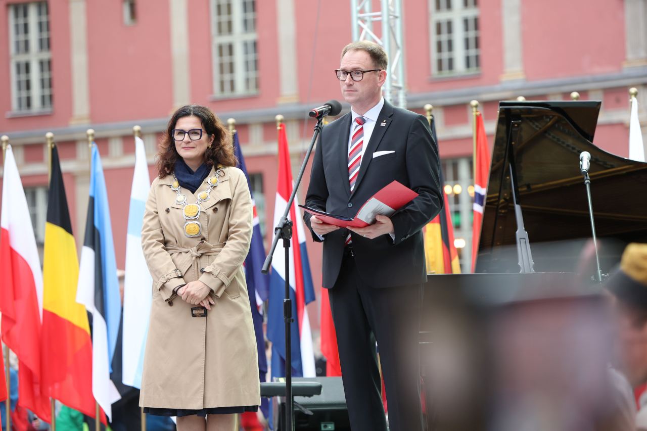 „Należy wyciągnąć wnioski z przeszłości i wspólnie pracować na rzecz przyszłości, w której konflikty są rozwiązywane poprzez dialog i wzajemny szacunek. Duch Hanzy - duch współpracy, handlu i pokoju - prowadzi nas i inspiruje do obrony europejskich wartości” - podkreślił burmistrz Lubeki.