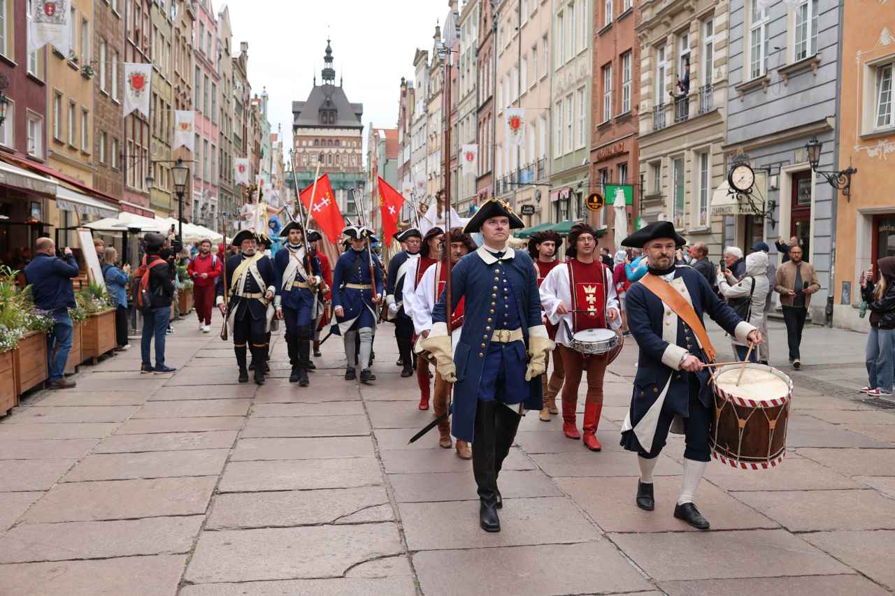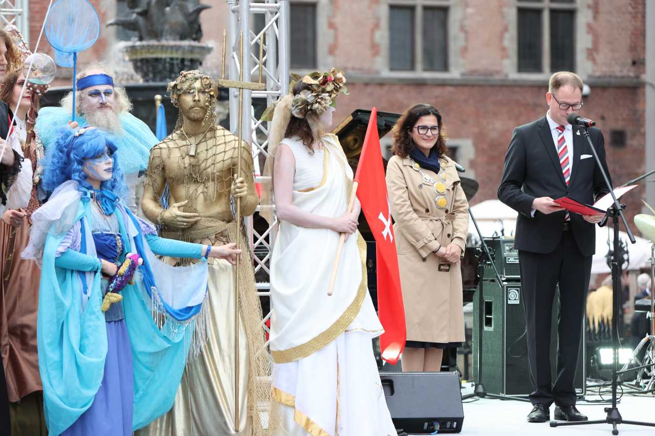 Na czele parady szły dwie z ośmiu Gdańskich Alegorii - Wolność i Sława. Za nimi podążali ubrani w historyczne stroje żołnierze Garnizonu Gdańskiego, dawni strażnicy bram miasta oraz gdańscy werbliści. Pojawił się także sam „król morski Gdańska” - Neptun, wraz ze swoim dworem - aktorami z teatru Gdański Archipelag Kultury.