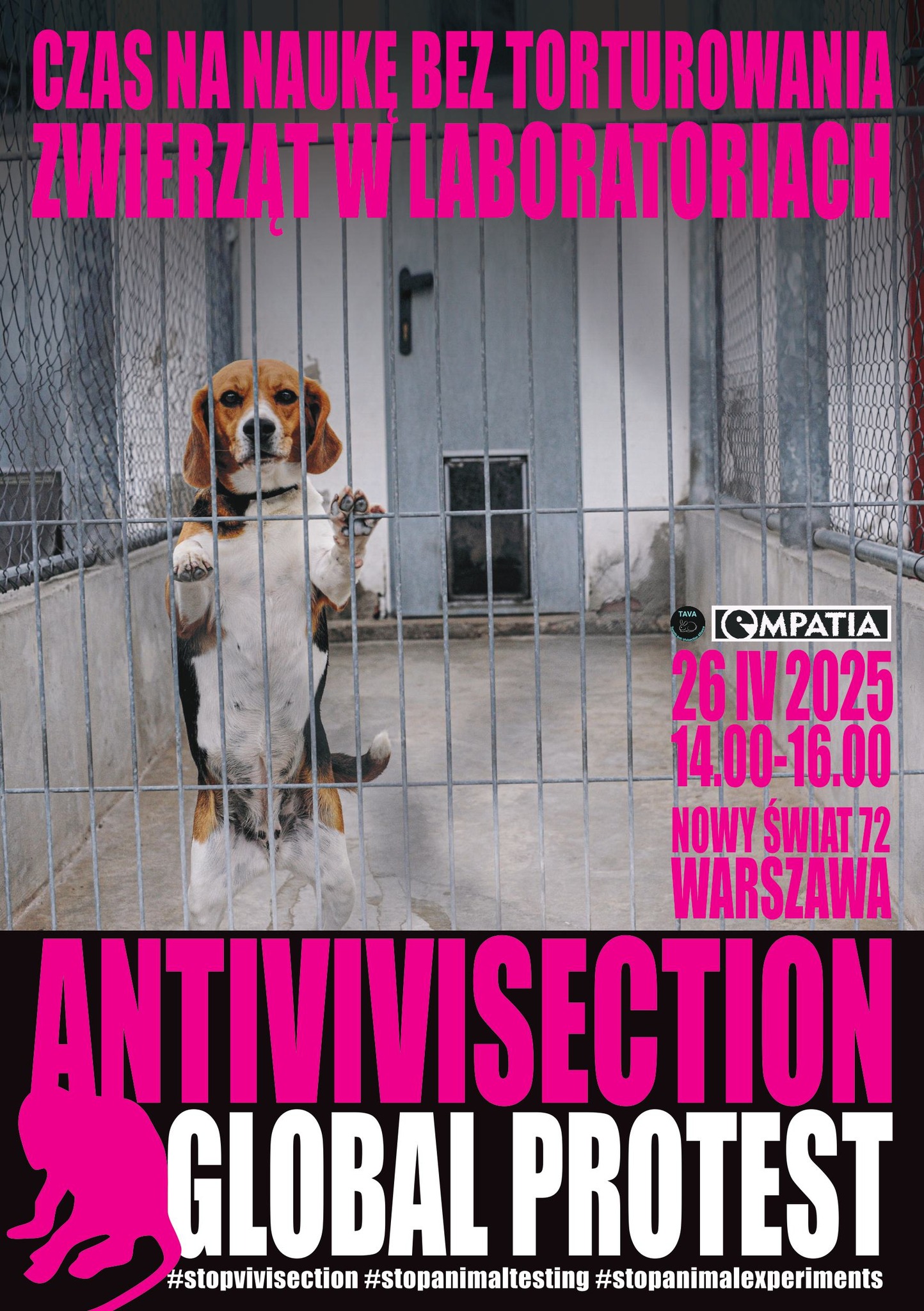 26 kwietnia 2025 r. odbędzie się w Warszawie polska edycja międzynarodowego protestu przeciwko wiwisekcji. „Wiwisekcja” to słowo - hasło obejmuje nie tylko sekcje żywych zwierząt, ale wszelkie rodzaje eksperymentów naukowych i pseudonaukowych na zwierzętach. Tego dnia, o tej samej godzinie podobne akcje odbędą się w 56 miastach na świecie. Wezmą w nich udział osoby dla których los zwierząt jest ważny, w tym aktywiści, naukowcy, lekarze, etycy, filozofki, przedstawicielki organizacji społecznych.