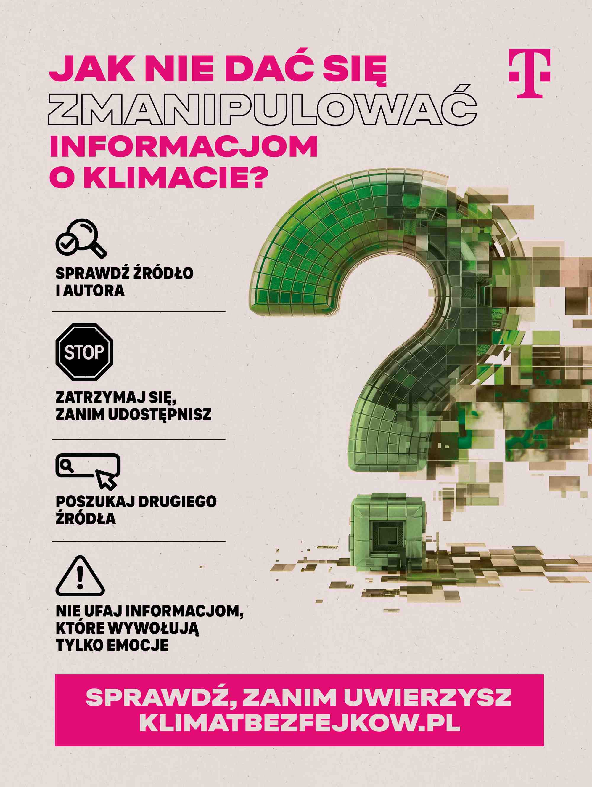 Polacy coraz rzadziej kwestionują zmiany klimatu, ale coraz częściej wątpią, czy działania mają sens. W Dniu Ziemi, T-Mobile Polska publikuje raport przygotowany we współpracy z UNEP/GRID-Warszawa i startuje z kampanią „Klimat bez fejków”. Jako firma technologiczna, działająca w środowisku cyfrowym, operator zwraca uwagę na rolę jakości informacji w podejmowaniu realnych decyzji klimatycznych.