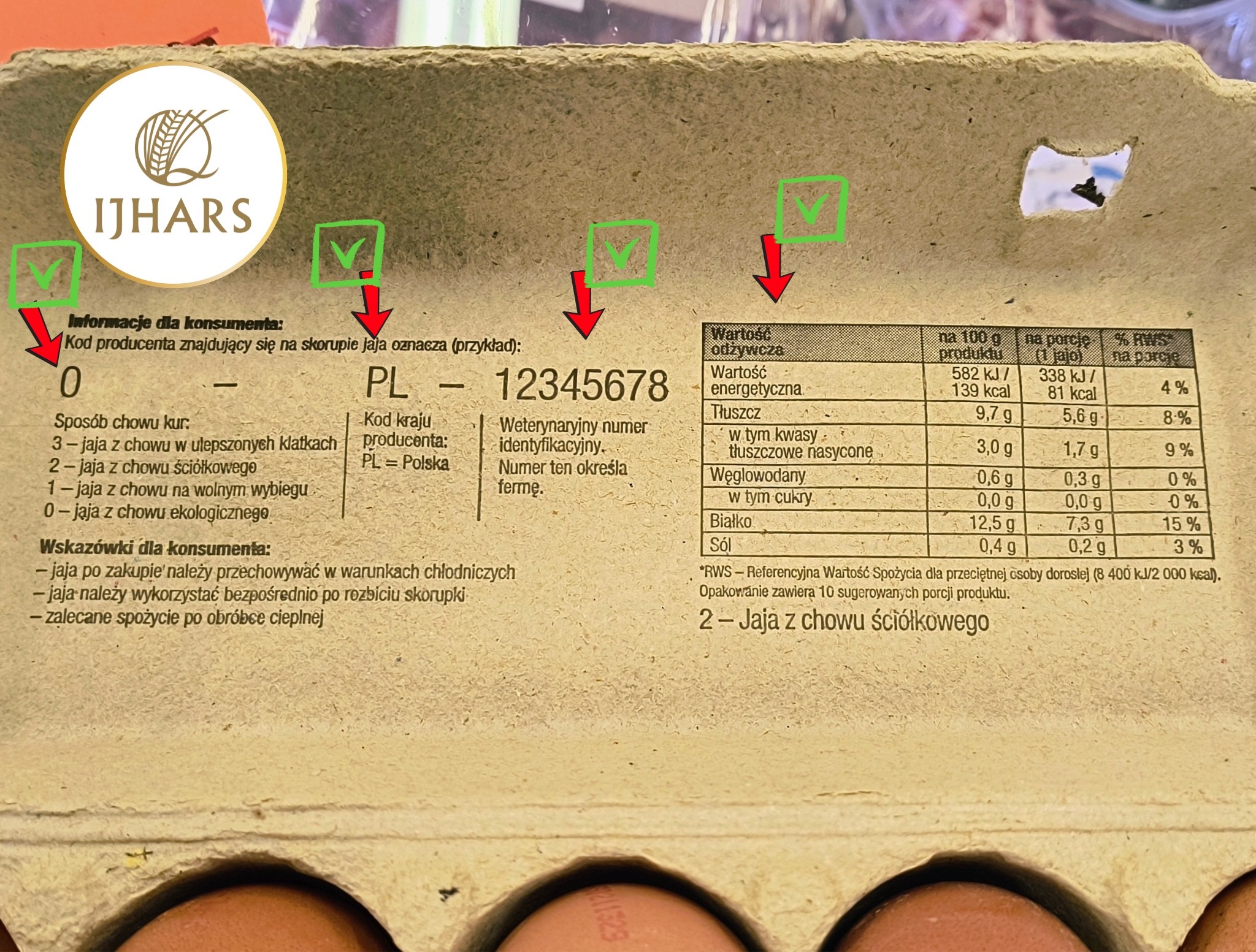 Najwięcej nieprawidłowości dotyczyło jaj oferowanych do sprzedaży w opakowaniach (wytłaczankach). IJHARS odnotowała przypadki m.in.: umieszczenia daty minimalnej trwałości na opakowaniu w sposób nietrwały i łatwy do usunięcia; braku lub niewłaściwie opisanej metody chowu (np. używano sformułowania „chów klatkowy” zamiast aktualnie obowiązującego „jaja z chowu w ulepszonych klatkach”, braku lub nieprawidłowych danych producenta/podmiotu wprowadzającego jaja do obrotu.