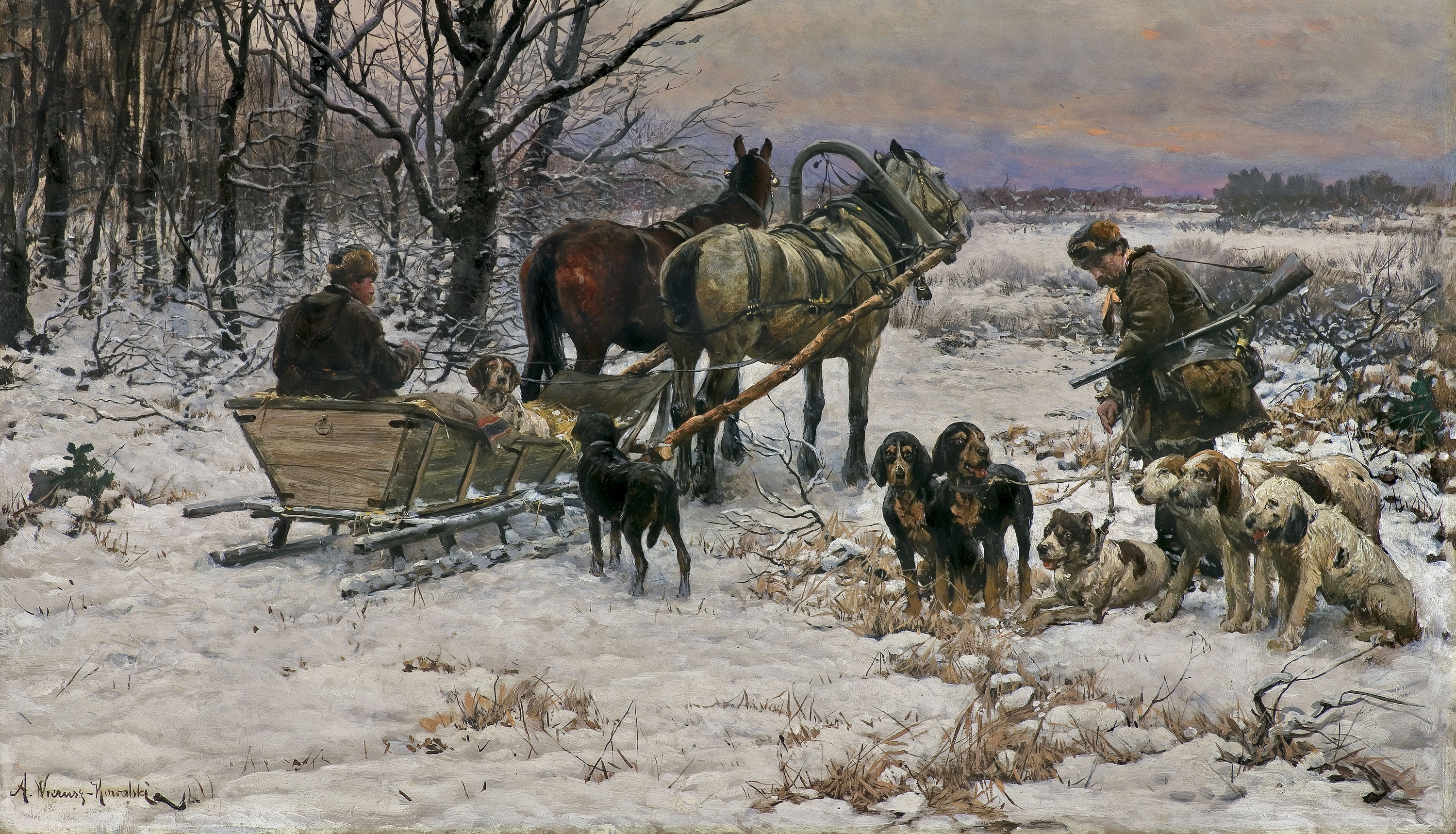 W katalogu aukcji znaleźć też można trzy dzieła Alfreda Wierusza-Kowalskiego, jednego z najbardziej cenionych przez kolekcjonerów artystów. „W czasie polowania” i „Wyruszając o świcie” to kompozycje prezentujące pełnię stylu artysty. Stąd ich ceny wywoławcze to - odpowiednio - 600 000 zł i 1 100 000 zł. Licytacja płótna „Beduini” zacznie się natomiast od 360 000 zł.
