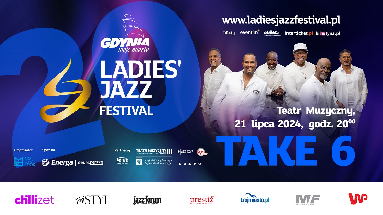 I o 20:00 Take 6 – najbardziej utytułowany zespół wokalny na świecie – na Ladies’ Jazz Festival tego jeszcze nie było, ale ci, którzy doświadczyli choć jednego ich koncertu wiedzą, że będzie to niesamowite przeżycie. – 21/07 20:00.