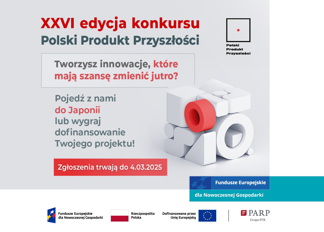 Polska Agencja Rozwoju Przedsiębiorczości (PARP) rozpoczęła XXVI edycję prestiżowego konkursu „Polski Produkt Przyszłości”, którego celem jest wyłonienie najbardziej przełomowych produktów i technologii o istotnym potencjale zarówno na rynku krajowym, jak i zagranicznym. Zgłoszenia można nadsyłać do 4 marca 2025 roku. Podczas gali finałowej dowiemy się, jakie projekty już wkrótce będą zmieniać naszą rzeczywistość. Dla zwycięzców w trzech kategoriach przewidziano nagrody finansowe w wysokości 100 tys. zł, a dla wyróżnionych – 25 tys. zł.