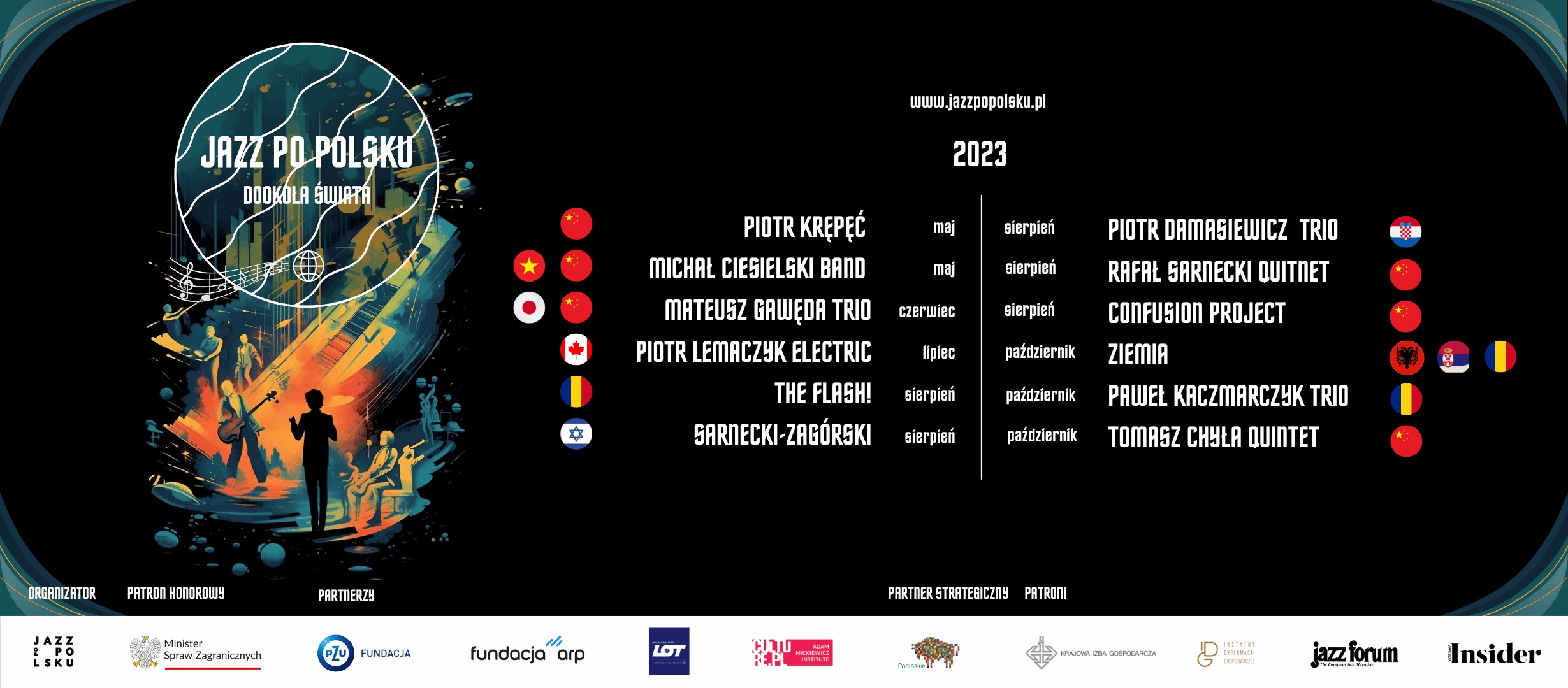 Podczas trasy koncertowej JAZZ PO POLSKU „Dookoła Świata”, realizowanej od kwietnia do października 2023 r. wystąpili czołowi polscy artyści niezależnej sceny jazzowej i improwizowanej. W projekcie wzięli udział: Piotr Krępeć (kwiecień: Chiny), Michał Ciesielski Band (maj: Chiny, Wietnam), Mateusz Gawęda Trio (czerwiec: Chiny, Japonia), Piotr Lemańczyk Electric Band (lipiec: Kanada), Piotr Damasiewicz Into The Roots (sierpień: Chorwacja), Rafał Sarnecki-Adam Zagórski (sierpień: Izrael), The Flash! (sierpień: Rumunia), Confusion Project (wrzesień: Chiny), Paweł Kaczmarczyk Trio (październik: Rumunia), ZIEMIA (październik: Albania, Rumunia, Serbia), Tomasz Chyła Quintet (październik: Chiny, Tajwan). Muzycy zagrali dla międzynarodowej publiczności autorski repertuar, jak i we współpracy z lokalnymi artystami stworzyli wydarzenia specjalne.